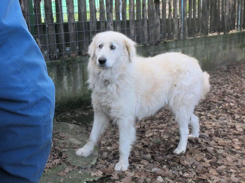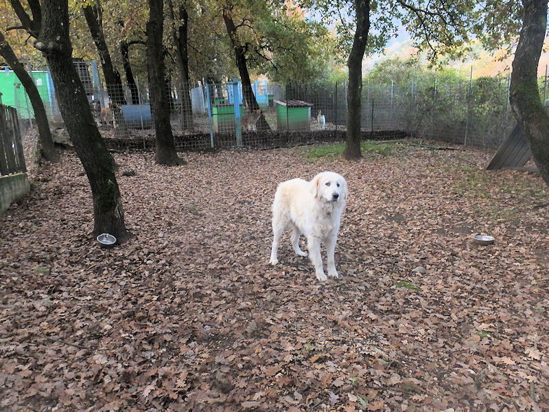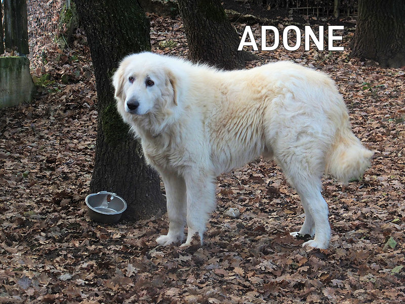 Adone  è un bel maremmano ,  ancora stordito  da questo brutto cambiamento nella sua vita.  Per un paio di anni, ha vissuto in  qualche giardino,  o in qualche terreno dove i cani vengono messi  a guardia di  galline e pecore.  Due anni, e poi …e ppi non serviva proprio piu’ , e,  come al solito,  se ne sono liberati buttandolo per la strada.