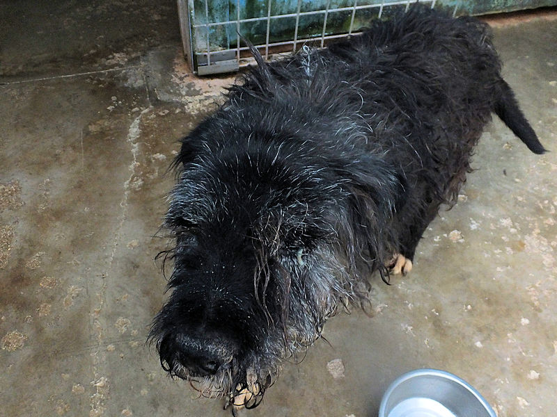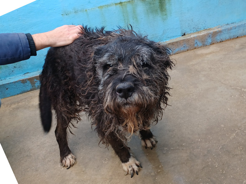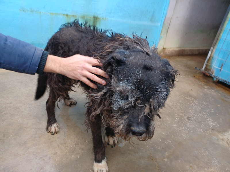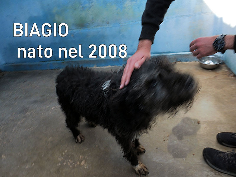 Biagio spinone nero neto nel 2008 e abbandonato a cinque anni, entrato in canile nel 2013 e scomparso in mezzo ad altri 500 cani, e visto solo quando di anni ne ha ormai 17 Taglia media sui 20 – 22 kg. Buono, buonissimo.