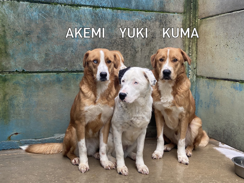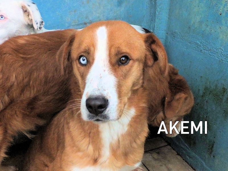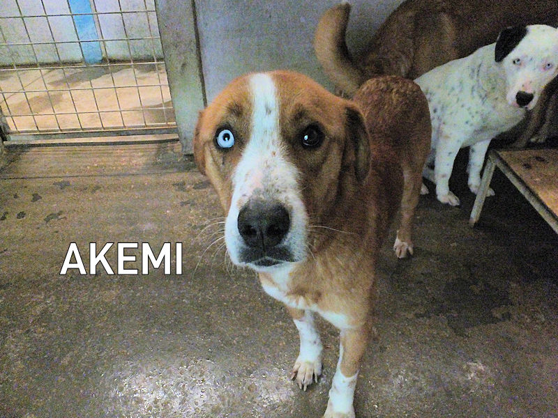 Finiti in strada e poi subito in canile, Akemi  è  la piu’ socievole e coraggiosa, si è subito fatta avanti per  ricevere qualche coccola. Curiosa e gentile, è davvero bellissima con un occhio azzurro ed uno scuro