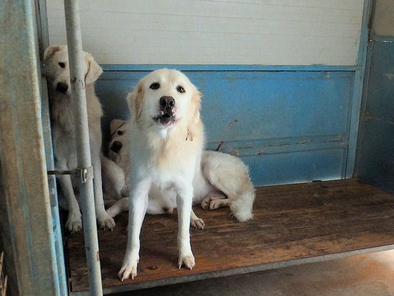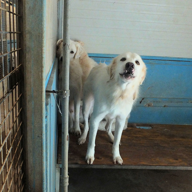 Aki, Ercole ed Hulk sono dei mix Maremmano-Golden, una tipologia di meticcio molto comune nel Lazio. Nati a fine agosto 2023, a sei mesi sono finiti in quel box, a inizio marzo 2024. E li’ passeranno tutta la loro vita.