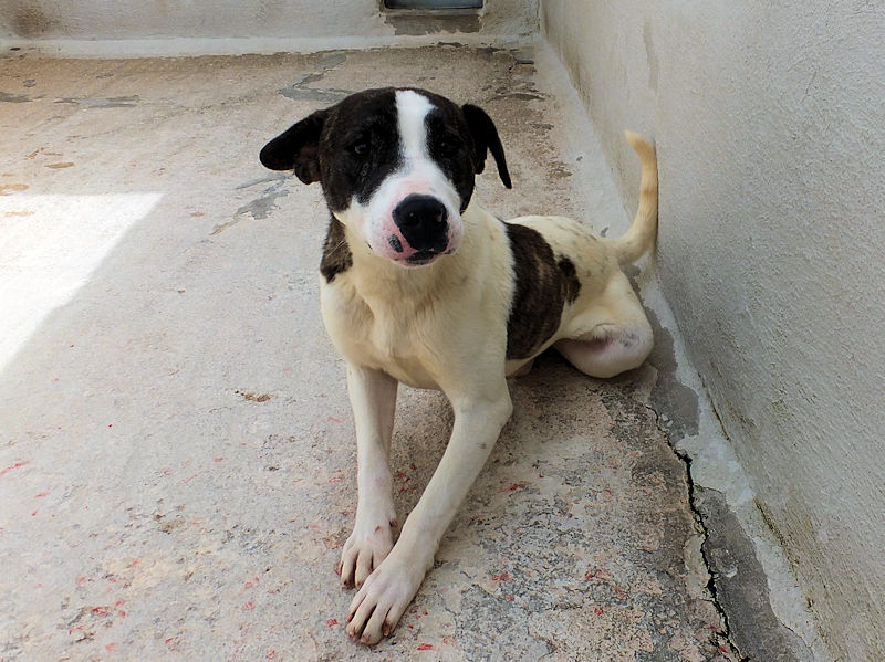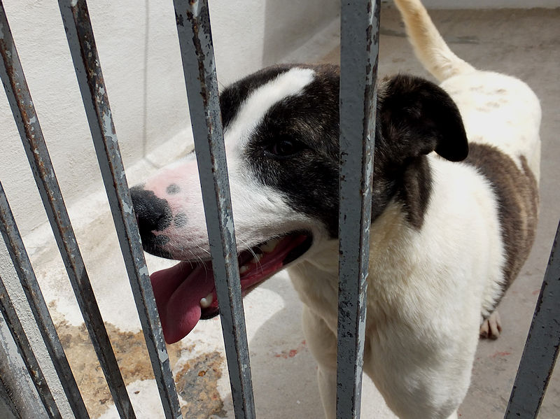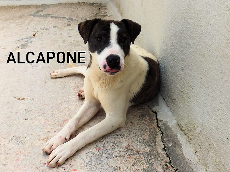 Alcapone è un vero duro, un boss come pochi. Ad un solo anno di eta’ è finito in canile insieme a sua sorella Kika. Quando è arrivato, era pieno di esscoriazioni , e ce laveva con tutti i cani del mondo. Ma pian piano si sta calmando, ed ora vive in box con una femmina ed un maschio . Bello ed aitante, cerchiamo per Alcapone una buona adozione in casa con giardino, con persone gia’ esperte nella gestione di cani di una certa mole, ed eventualmente con una femmina di buona taglia remissiva che gli faccia continuare il suo ruolo da boss.