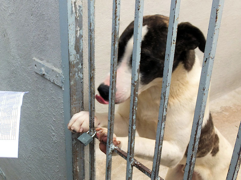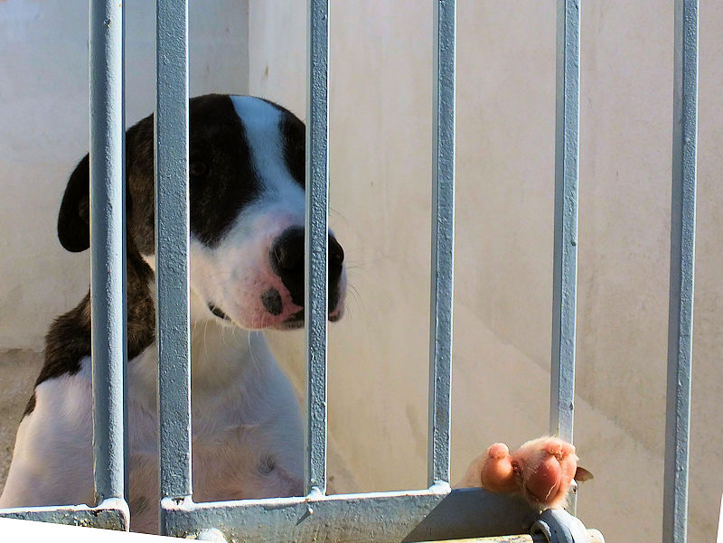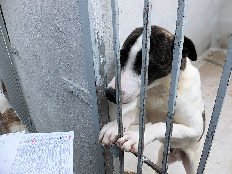 Alcapone + un cagnolone di taglia mediogrande, sui 35 kg, diciamo anche grande. Nato a gennaio 2024, D UN nno si eta’ si ritrova rinchiuso in prigione e forse per un ergastolo asolutamente non meritato.