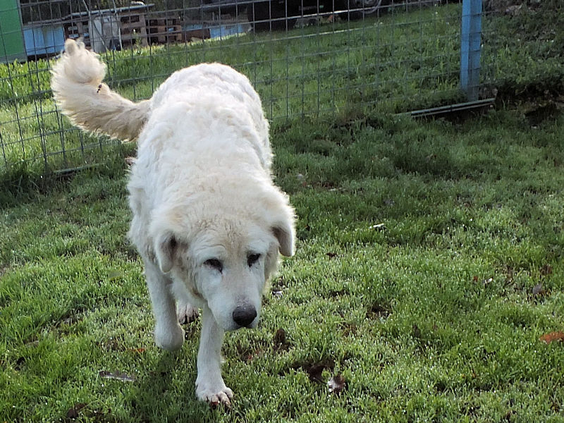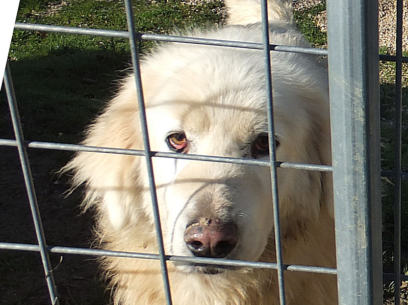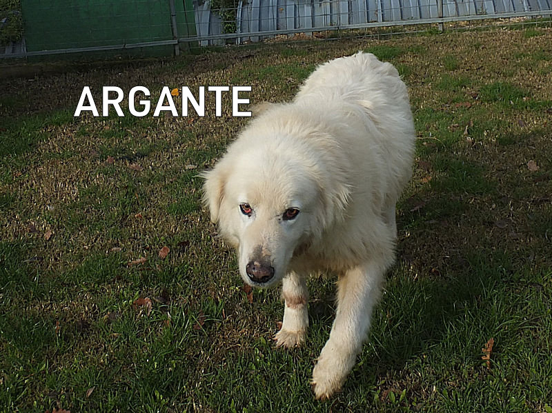 Argante è un bel maremmano di taglia grande sui 40 kg. Nato ad inizio 2021, a tre anni è finito per la strada e poi in canile, a fine febbraio 2024