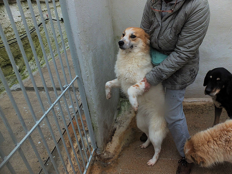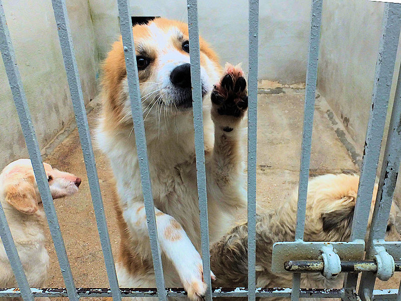 Benji in quel box ci è cresciuto, cagnolotto bellissimo e allegro, socievole con le persone, gentile con altri cani anche maschi . Ma non ha mai visto nulla del mondo al di fuori di quei muri,   e deve imparare a vivere in famiglia.