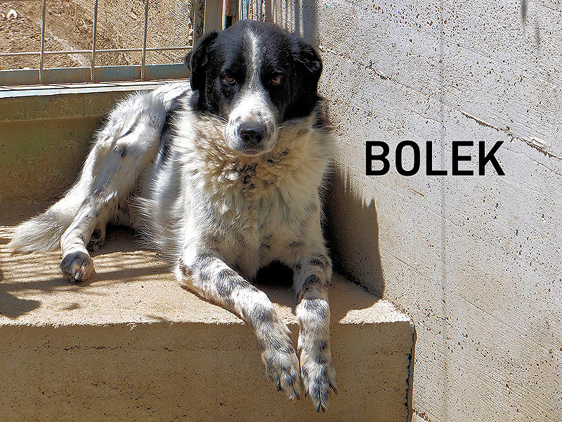 Bolek è un bel cagnolotto di taglia medio grande, sui 35 kg almeno, potrebbe essere un incrocio tra un maremmano ed un Border Collie ma è difficile individuare qualche razza in questo bel mix bianconero…Nato a novembre 2017, ha vissuto tre anni da qualche parte prima di finire in canile a novembre 2020.