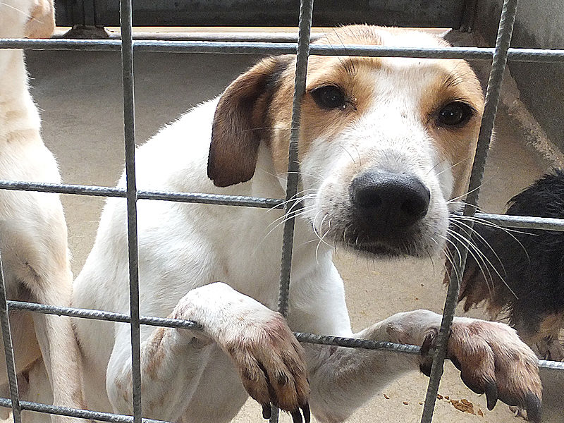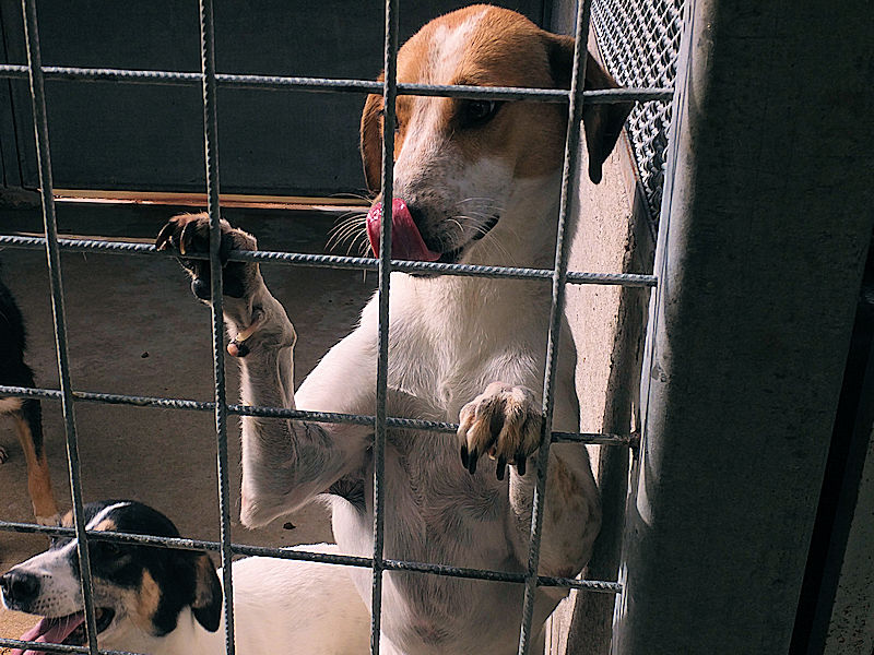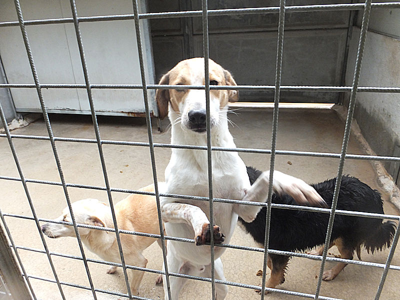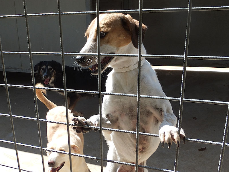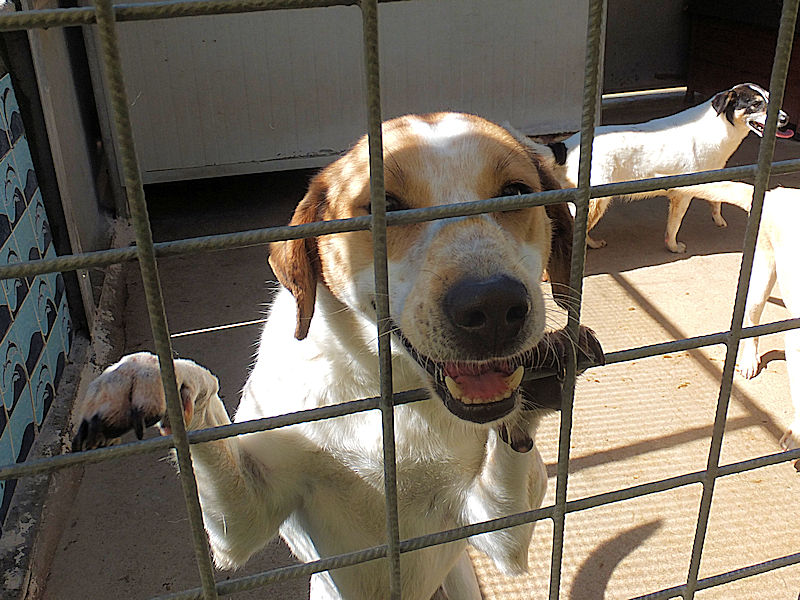 Sono passati mesi , e poi anni, e Brandy sempre li’, ad aspettare che qualcuno si innamori del suo musetto. Il box è la sua caa, la sola che conosce, li’ si sente al sicuro. Ma se esce da li, si sente preoccupato, e anche con le persone si sente un po’ in difficolta’ senza che ci sia lo schermo della solita gabbia.
