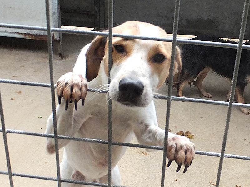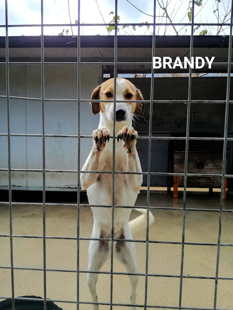 Brandy è un cagnoletto un poco segugio, una taglia contenuta, sui 16 kg. Nato a maggio 2016, è finito in canile a sette mesi, a dicembre 2016.