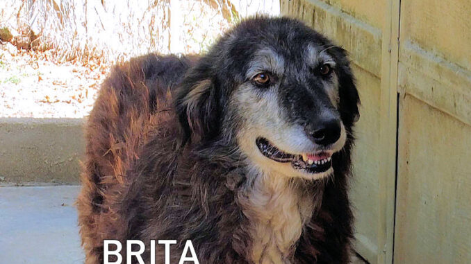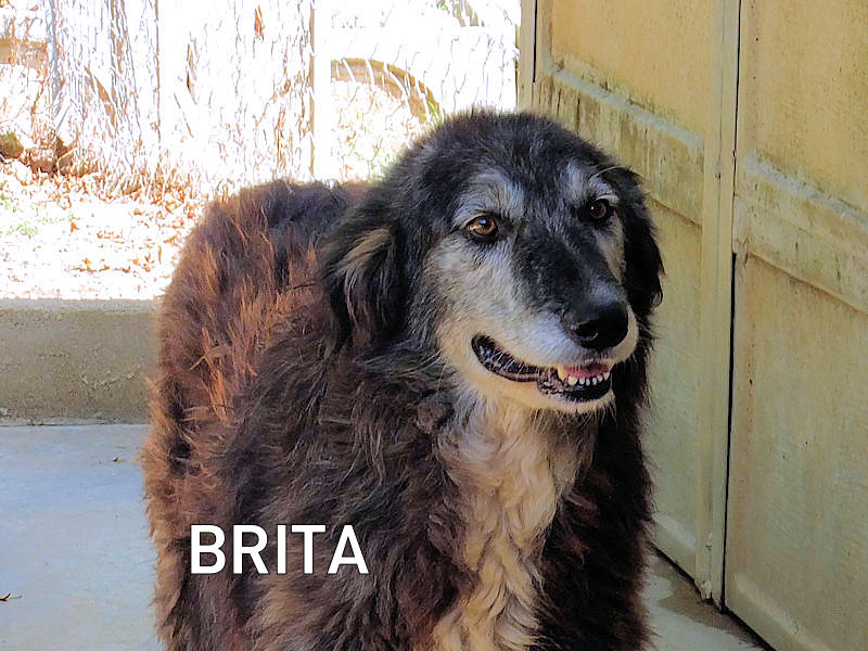 Brita è una bella cagnolotta tipo Pastore, la possiamo immaginare benissimo mentre segue un pastore ed il suo gregge, oppure nel giardino di una casa, a custodire la seenita’ della famiglia. Per quattro anni ha vissuto cosi’, fino al giorno in cui è diventata inutile e si sono sbarazzati di lei, senza minimamente preoccuparsi del suo destino.