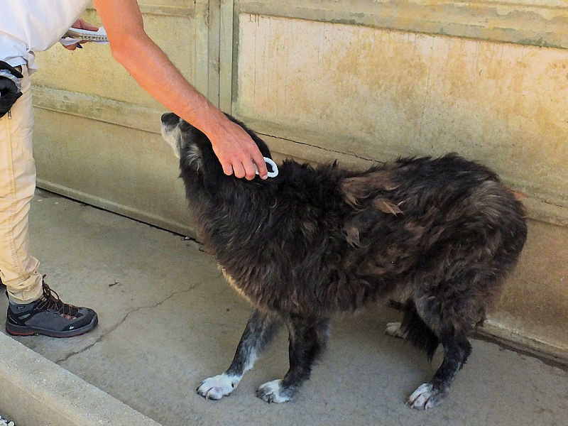 Convive in un recinto con altri tre cani tutti maschi, non sappiamo come va con le femmine. Ci ha accolto nel suo recinto con un poco di timidezza, è normale, ma con tanta tanta curiosita’ e disponibilita’, si avvicinava sorridente poi ci girava attorn, poi un passo indietro ed uno in avanti…