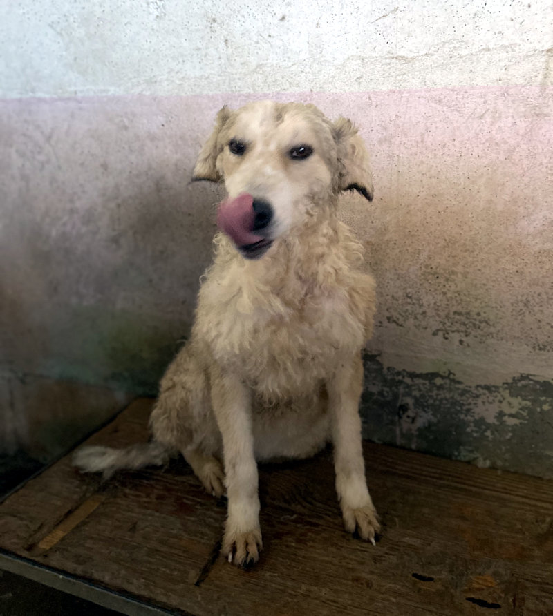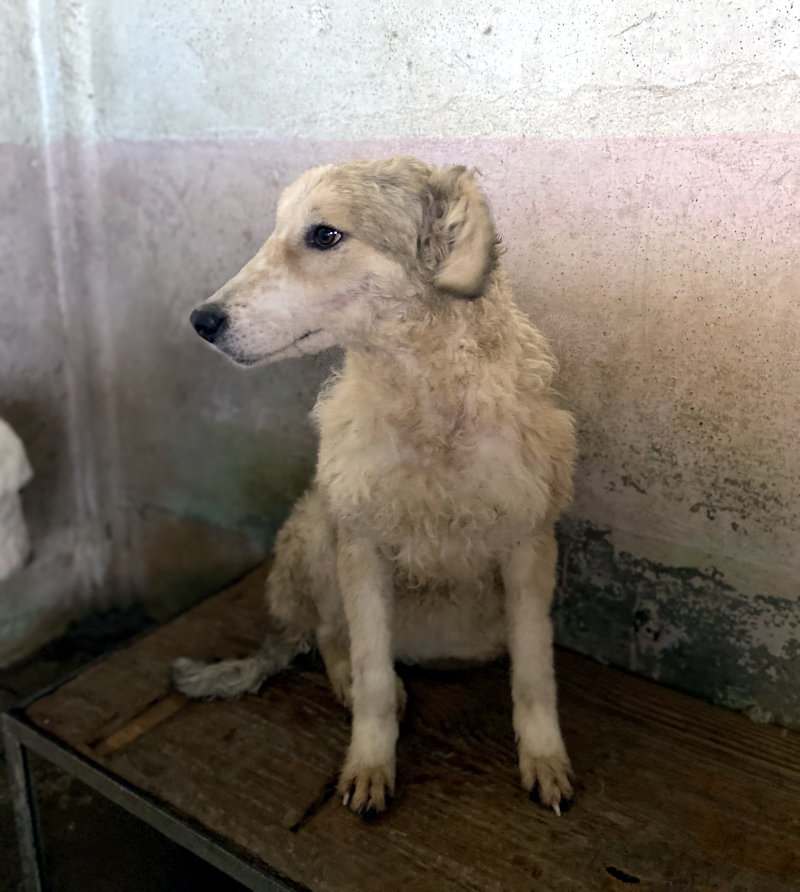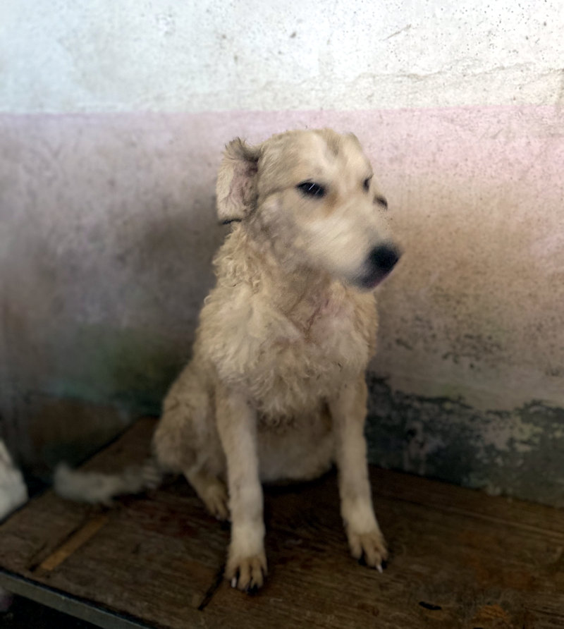 Bruna cagnolotta  un po’ Golden  di taglia media  sui 20 kg Nata a  marzo 2024, a due mesi era gia’ in un box di canile, a maggio 2024