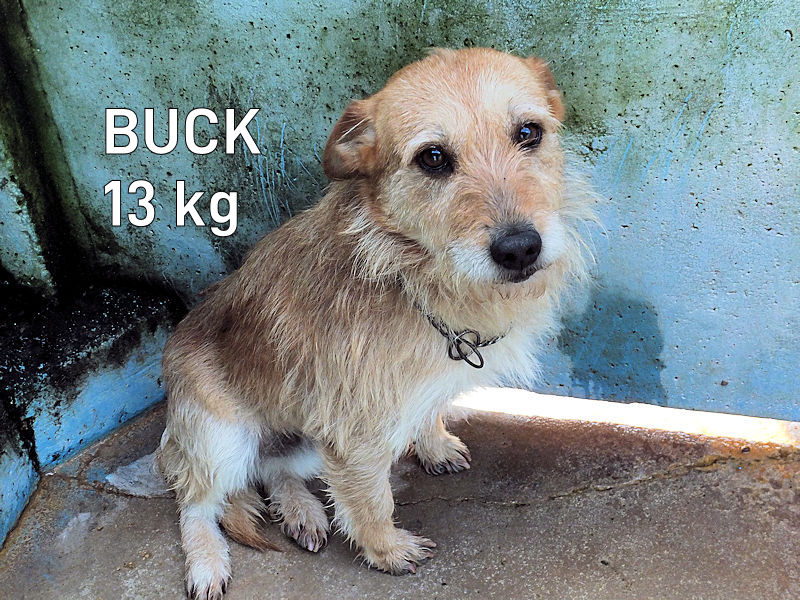 Buck è un cagnolino carinissimo, una taglia  mediopiccola sui 12-13 kg. Nato probabilmente nel 2023.