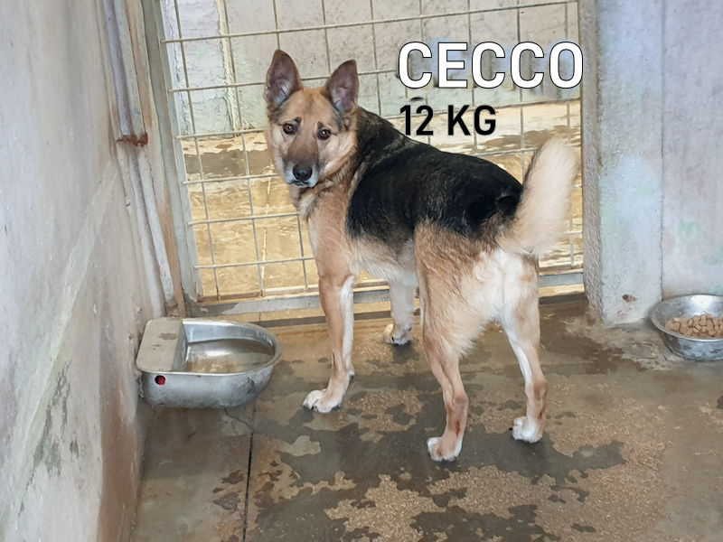 Cecco bel cagnolino sembra un lupetto piccolo piccolo, pesa intorno ai 12 – 13 kg, è nato ad aprile 2017 ed è stato buttato in strada e finito in canile ad aprile 2021.