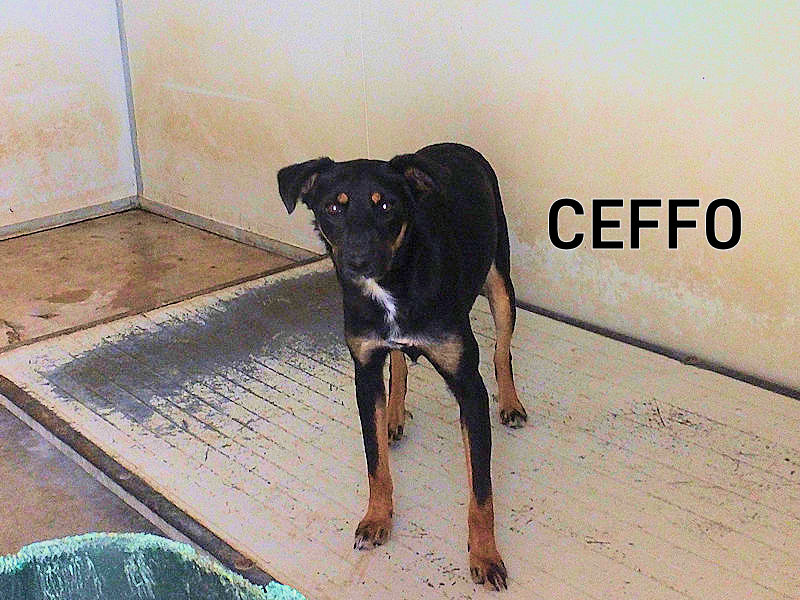 Ceffo è un cagnolino molto Pincher e molto Dobermann, ma non è piccolo come un Pincher e non è grande come un Dobermann. Probabilmente anche lui fa parte della schiera infinita di cuccioli indesiderati che continuano a nascere nella casa di chi non vuole sterilizzare il proprio cane e preferisce buttare via i cuccioli che continnnuano a nascere.