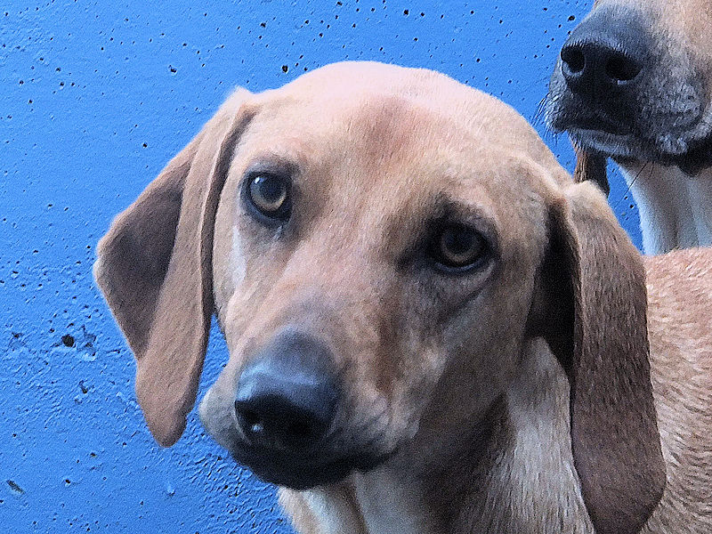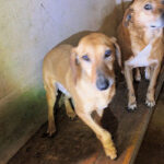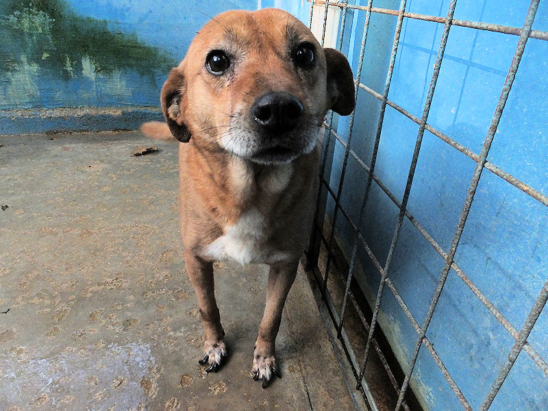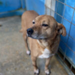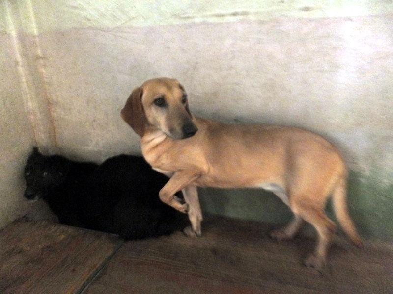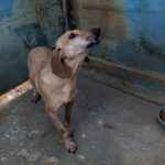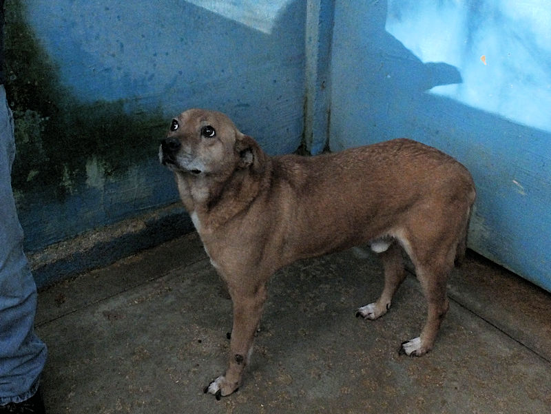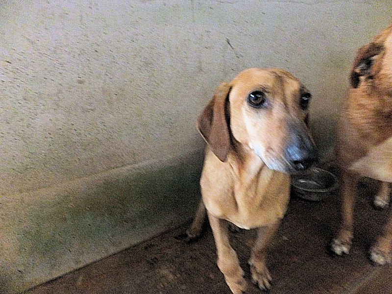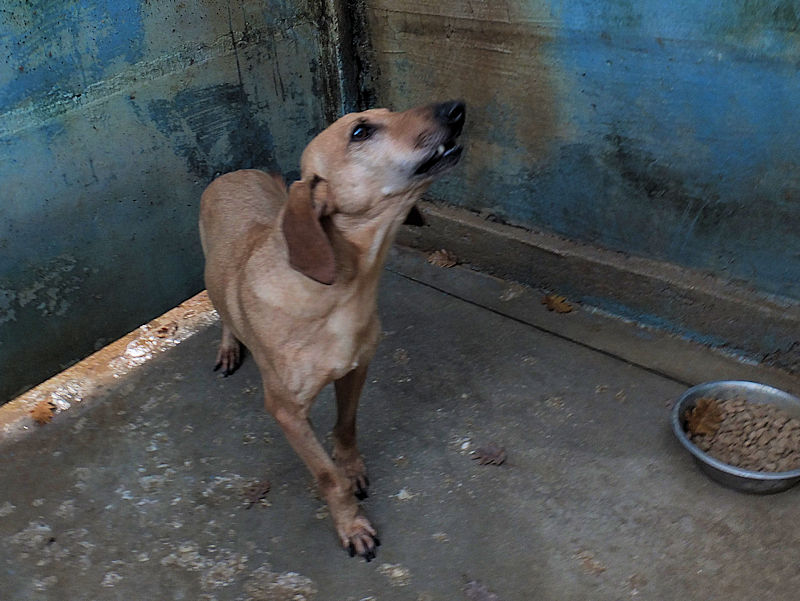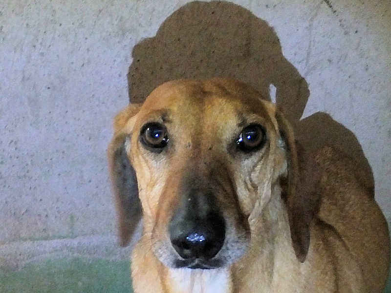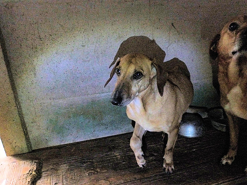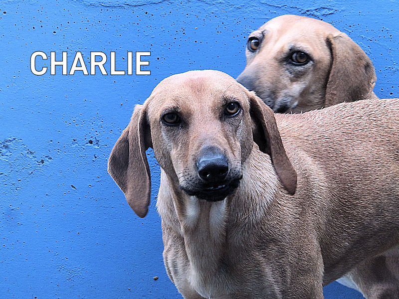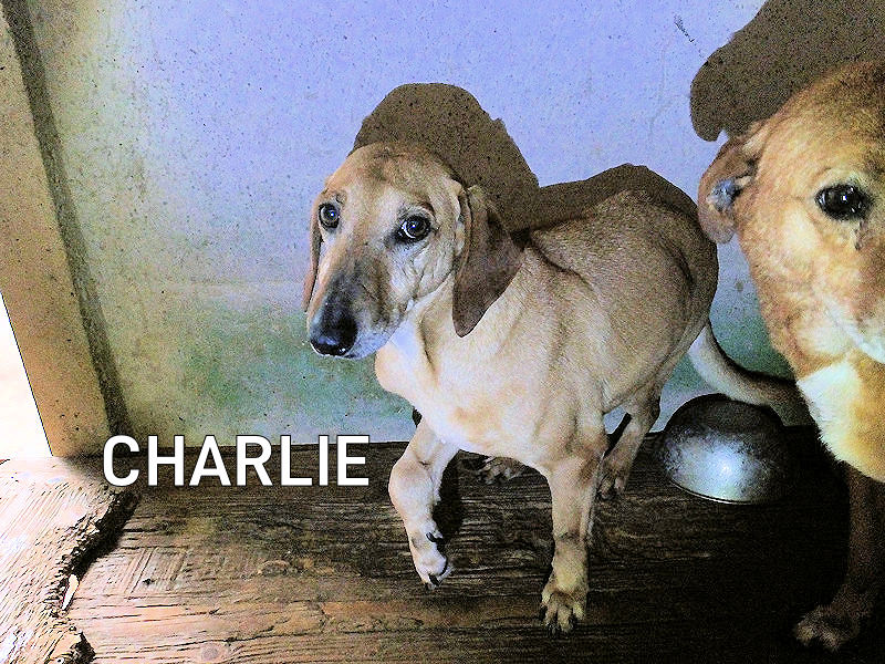 Quando entriamo nel suo box, dove vive insieme a tre compagni di sventura, di cui due femminucce, ecco che Charlie prende il ruolo di protettore, si schiera davanti alle due femminucce timide chiedendoci di restare lontane da loro, di non tentare di toccare nessuno. Ci adeguiamo, e ci accontentiamo di fotografare tutti da lontano. Charlie è coraggioso, vedremo se riusciremo a fare amicizia con lui ed a rassicurarlo sulle nostre intenzioni. Per ora, eccolo qui, bel segugetto che per due anni è pur stato da qualche parte, prima di finire abbandonato in strada e poi in canile.