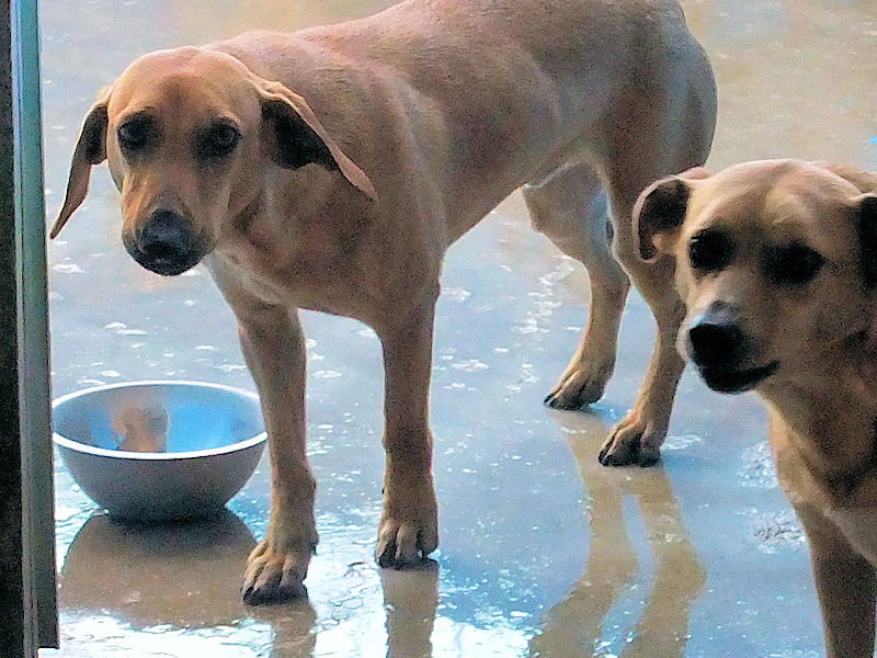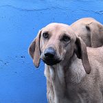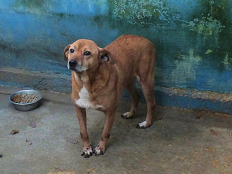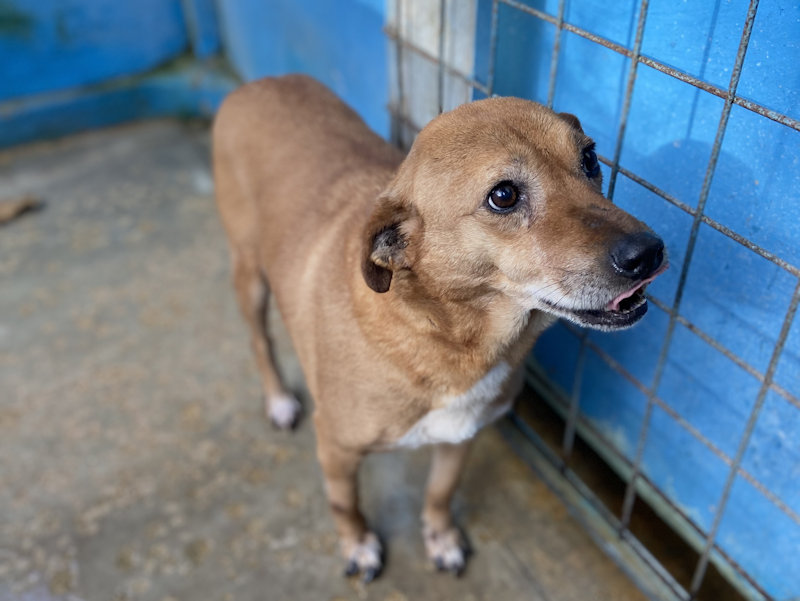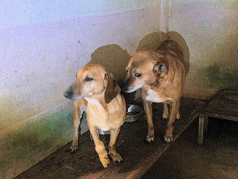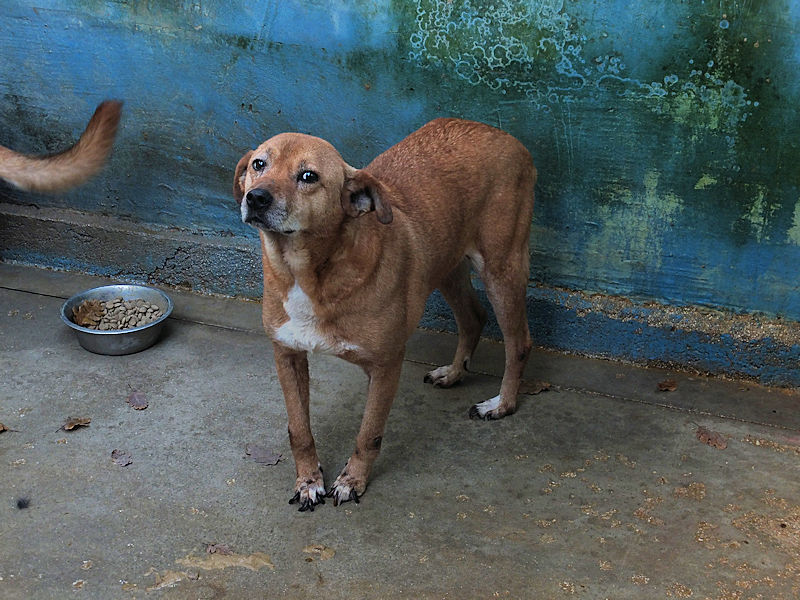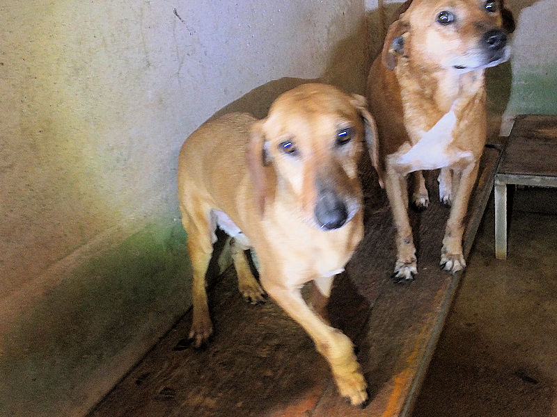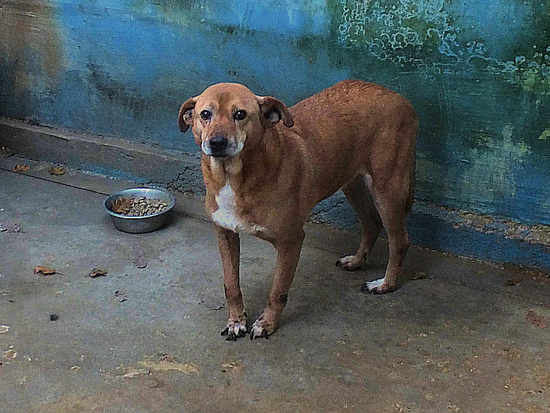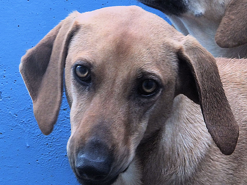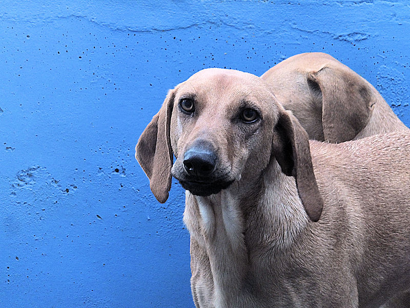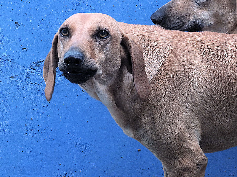 Quando entriamo nel suo box, dove vive insieme a tre compagni di sventura, di cui due femminucce, ecco che Charlie prende il ruolo di protettore, si schiera davanti alle due femminucce timide chiedendoci di restare lontane da loro, di non tentare di toccare nessuno. Ci adeguiamo, e ci accontentiamo di fotografare tutti da lontano. Charlie è coraggioso, vedremo se riusciremo a fare amicizia con lui ed a rassicurarlo sulle nostre intenzioni. Per ora, eccolo qui, bel segugetto che per due anni è pur stato da qualche parte, prima di finire abbandonato in strada e poi in canile.