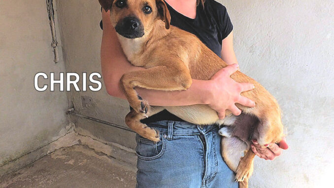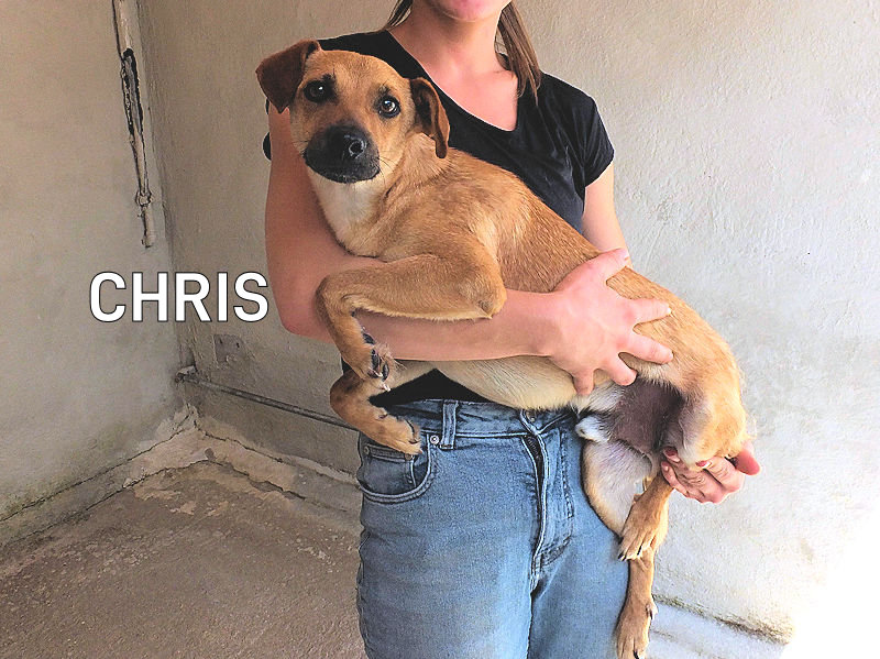 Chris  è un cagnolino piccolo, tenero e dolce, con due occhioni  ingenui da cucciolo. Per tre anni ha vissuto con una famiglia di infami traditori, che lo hanno buttato per la strada facendolo finire in canile. E lui, con quello sguardo  spaesato,   non ha ancora capito cosa gli è successo, non si rende conto che la sua vita è cambiata e corre il rischio di passare in quel box tutta la vita.