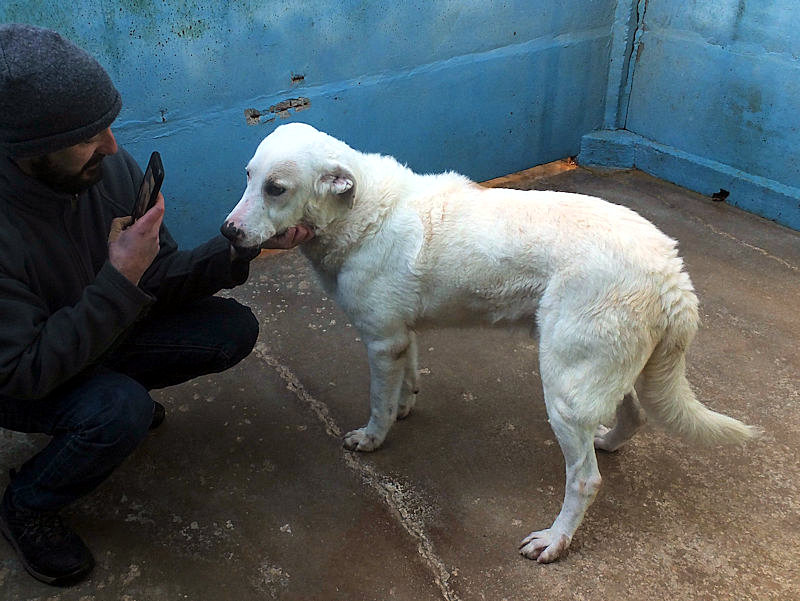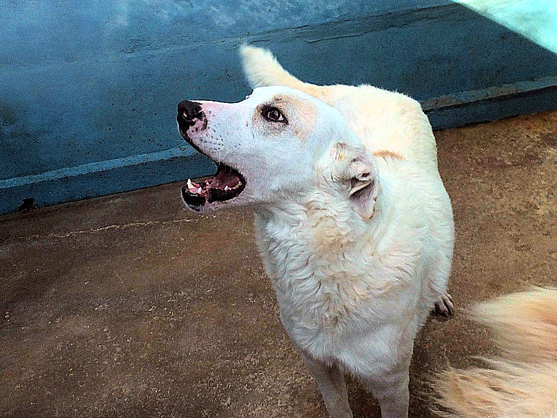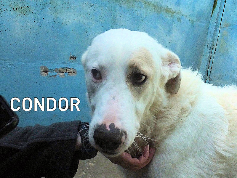 Condor gfinisce in strada e poi in canile, chissa’ quanto tempo avra’ aspettato che la sua famiglia venisse a riprenderlo…ma non si è visto nessuno …ed ora si è rassegnato, quando entriamo nel suo box ci accoglie con l’aria del padrone di casa un po’ seccato per l’intrusione, poi bastano quattro carezze ed eccolo li che fa gli occhi dolci, che non la smette piu’ di sorridere e di chiedere ancora coccole.