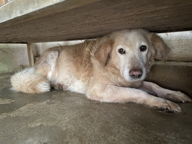 Cremina cagnoletta un poco Breton è una taglia media sui 20 kg. Nata a gennaio 2018, aveva tre mesi quando è finita in canile, ad aprile 2018. E non l’abbiamo mai vista prima della fine di novembre 2025. Non facciamo passare altri sette anni prima di aiutarla !