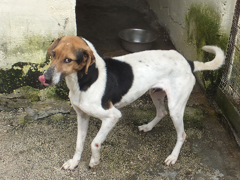 Dino è un cagnolino molto segugio con un bel mantello a chiazze , un musetto simpatico e due occhioni dolci. Un cagnolino piccolo e buono, ma ha avuto la sfortuna di nascere in una zona dove i cuccioli si prendono per gioco, per leggerezza, e poi, dopo un po’, si buttano via e si ricomincia.