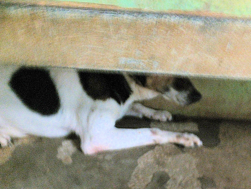 Quando arriviamo al suo box, esce ed entra in continuazione dalla parte interna dle box, non sa cosa fare, vorrebbe avvicinarsi ma non si osa, non sa se siamo amici o una minaccia e che possa capitargli qualcosa di ancor peggio di tutto quello che ha vissuto finora.