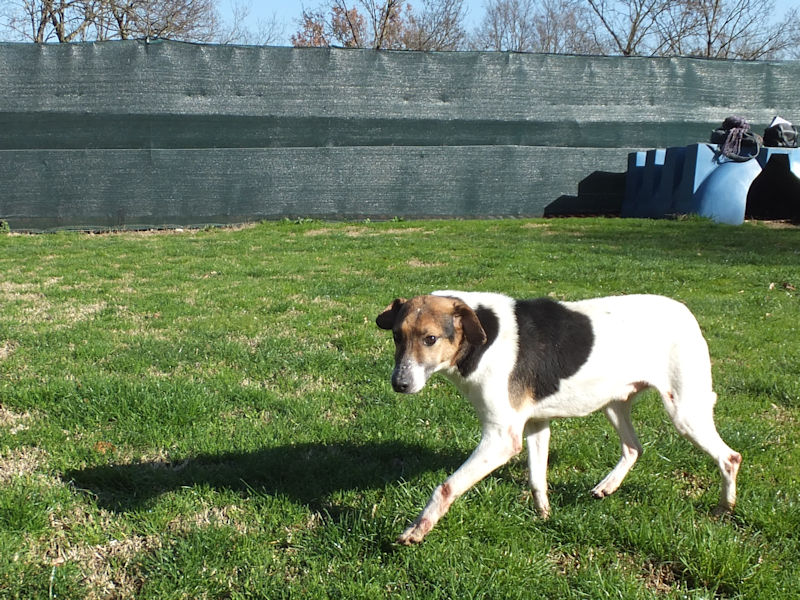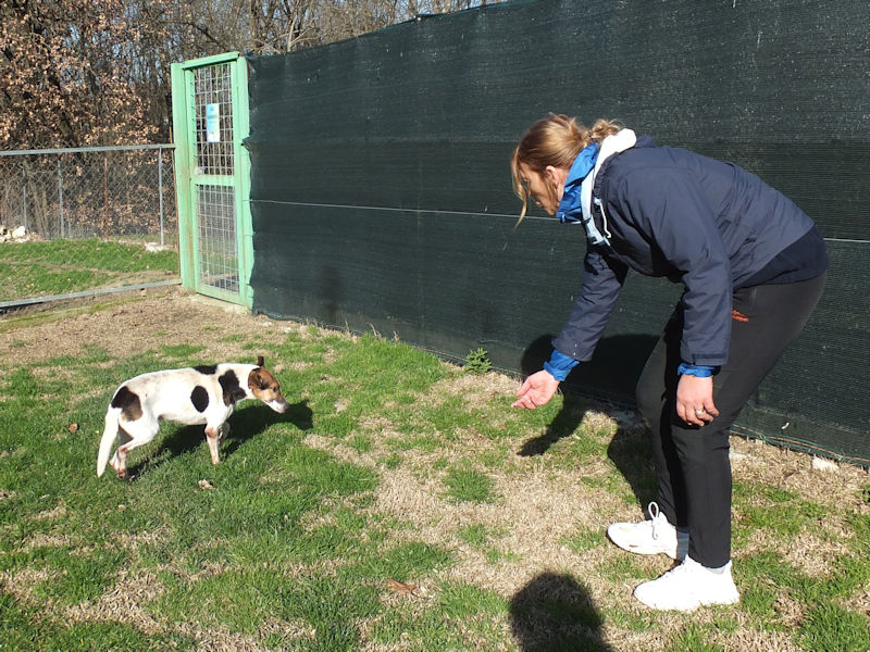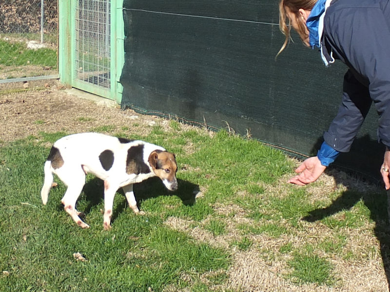 Lo vediamo anche nello sgambatorio, esplora, corre, annusa. Si avvicina pero, molto incuriosito, poi scappa via, poi ritorna. Insomma, vuole ma ha timore, con lui ci vuole pazienza !