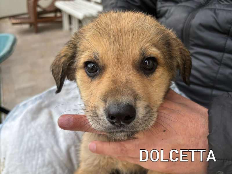 Dolcetta è una meravigliosa cuccioletta  nata  probabilmente a gennaio 2025, nata nell casa di chi non spende soldi per sterilizzare il proprio cane