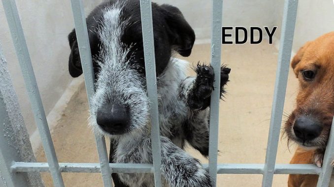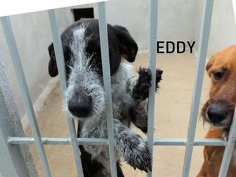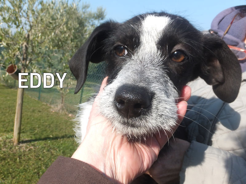 Eddy è  uno dei quattro cuccioli di mamma Sofia, bella spinoncina abbandonata quando si sono accorti che  era incinta o subto dopo la loro nascita.   Un abbandono che li condannava tutti a morte, e non ci mancava molto : quando è finito in canile, era magrissimo, pieno di rogna e  stracolmo di pulci, zecche e vermi intestinali. E aveva soltanto un mese !