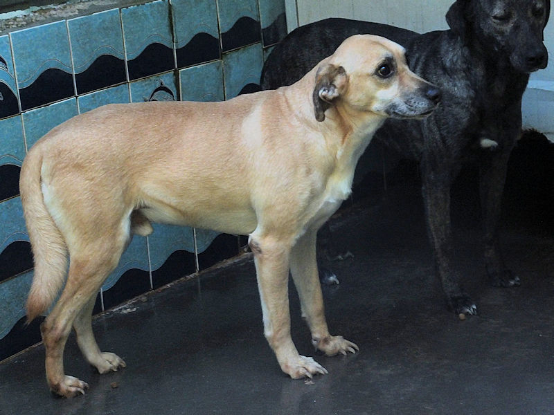 Ha un aspetto delicato, gentile, ed infatti non ha alcun problema a convivere nel box con cani maschi e femmine.