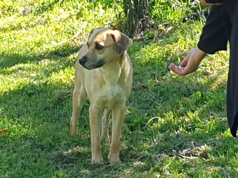 Ma è molto curioso, ci continua a girare attorno, cerca di studiare il nostro comportamento, e siamo sicure che non ci vorrebbe molto tempo per tranquillizzarlo e fare amicizia con lui.