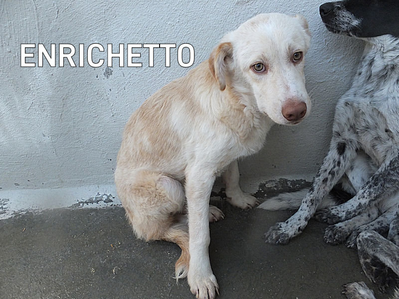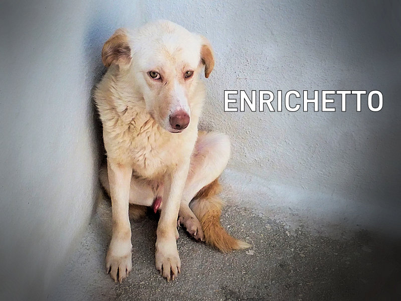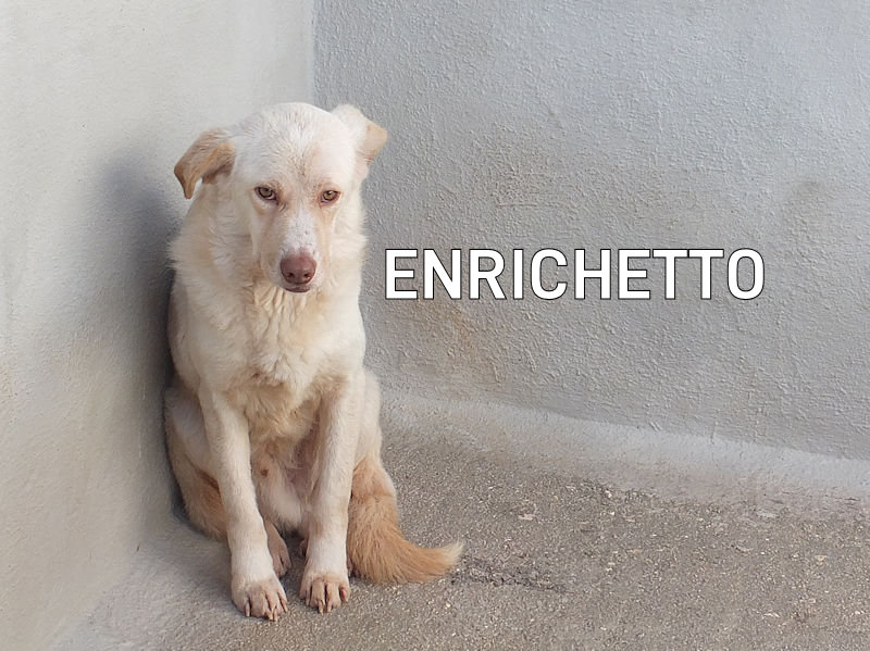 Enrichetto meraviglioso cagnolotto biondo, non sappiamo da dove arrivi. Pensiamo faccia parte di un gruppetto di cani tenuti in modo inadeguato da qualcuno, in genere in qualche sperduto recinto in campagna, ben nascosto ed inaccessibile. I motivi ci sono sempre stati sconosciuti, forse del buon cuore ma non accompagno da una buona testa, chissa’. Comunque tutto il gruppetto si è ritrovato in canile, evidentemente dopo una segnalazione della loro presenza .