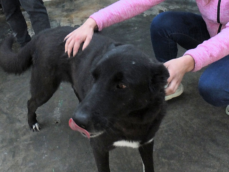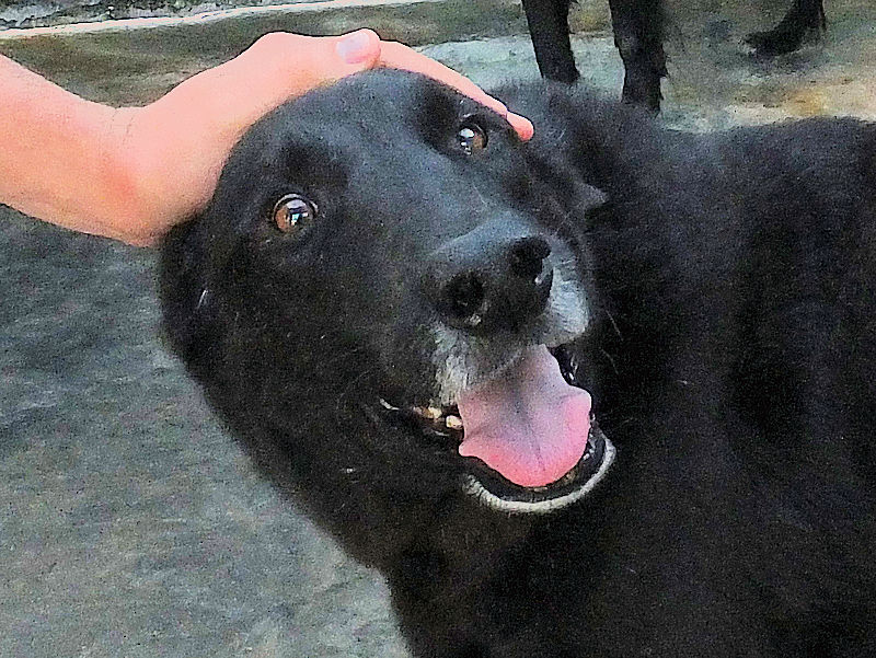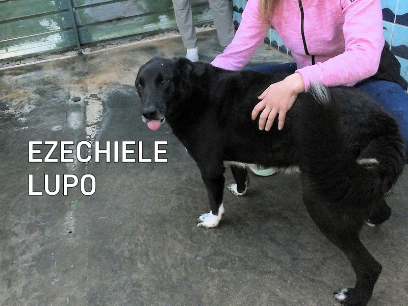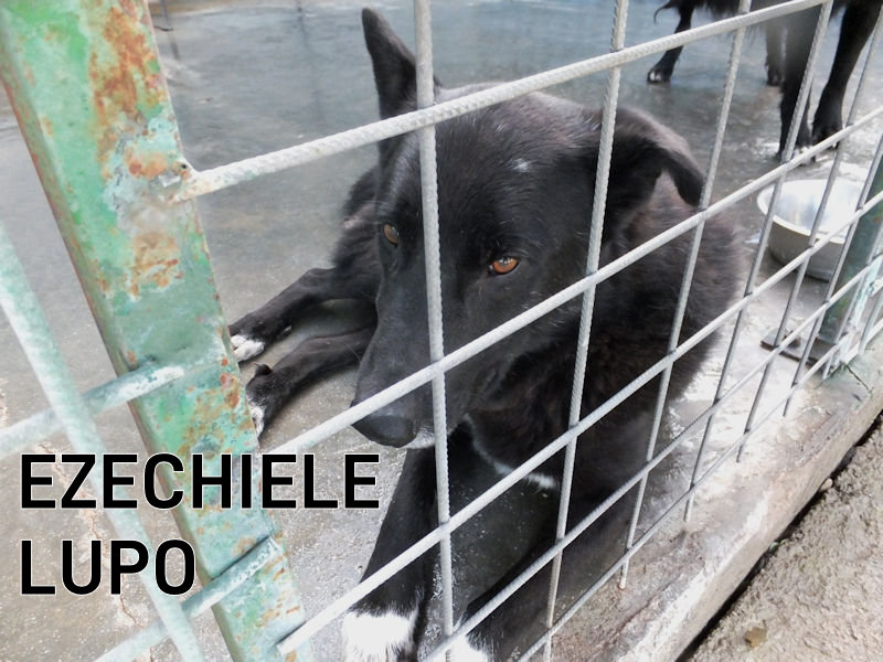 Ezechiele è un bel lupone nero, un tipo di presenza, un gran bel cane . I calzini bianchi lo rendono simpaticissimo e lui, che ha un bel carattere equilibrato e tranquillo, ci accoglie sorridente, disposto a fare amicizia. Per tre anni senza fubbio è stato nel giardino di casa di qualche traditore che, un brutto giorno, ha deciso che questo bel cagnolone non glki serviva piu’, ed è stato buttato in strada .
