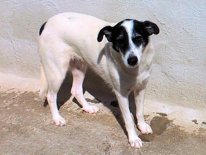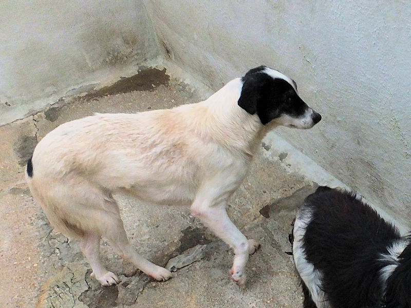 Soccorsa e portata in canile, come potete vedere ora la rogna è passata, lei sta bene, ma una certa diffidenza nei confrnti delle persone le è rimasta, e non vogliamo stressarla inutilmente cercando di avvicinarla a forza, Ci guarda da lontano con due occhioni che stringono il cuore, si vede che vorrebbe, vorrebbe, ma non ce la fa.