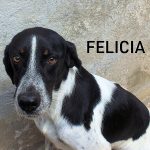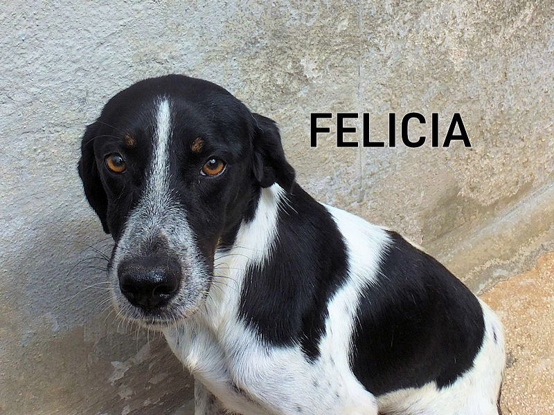 Felicia bella cagnoletta incrocio tra setter e pointer di taglia contenuta, sui 16 kg. è nata nel 2019, ha subito il taglio della coda, ha fallito la prova caccia ed è stata abbandonata finendo in canile nel 2021.