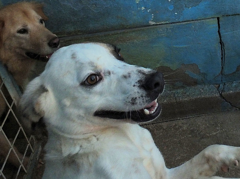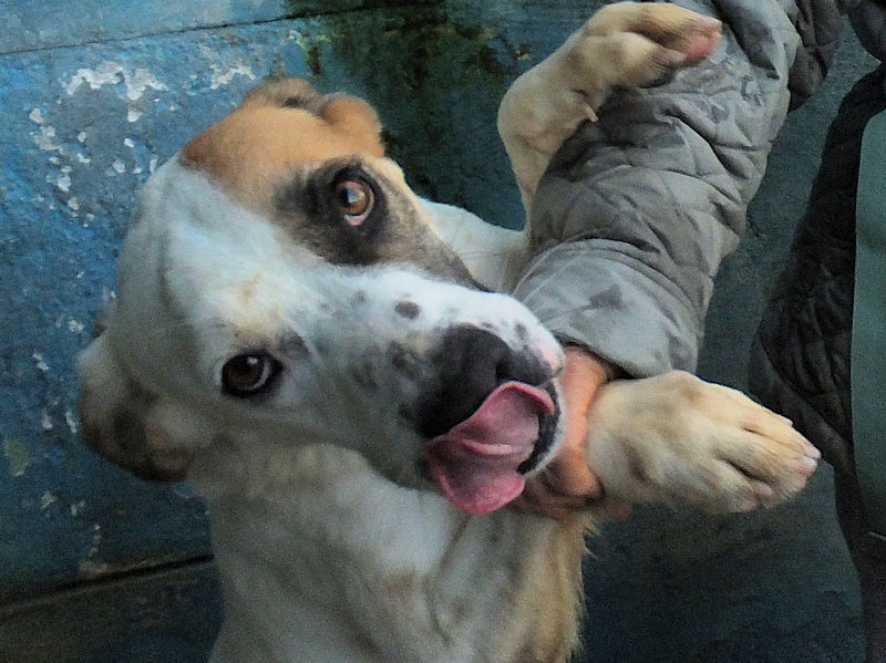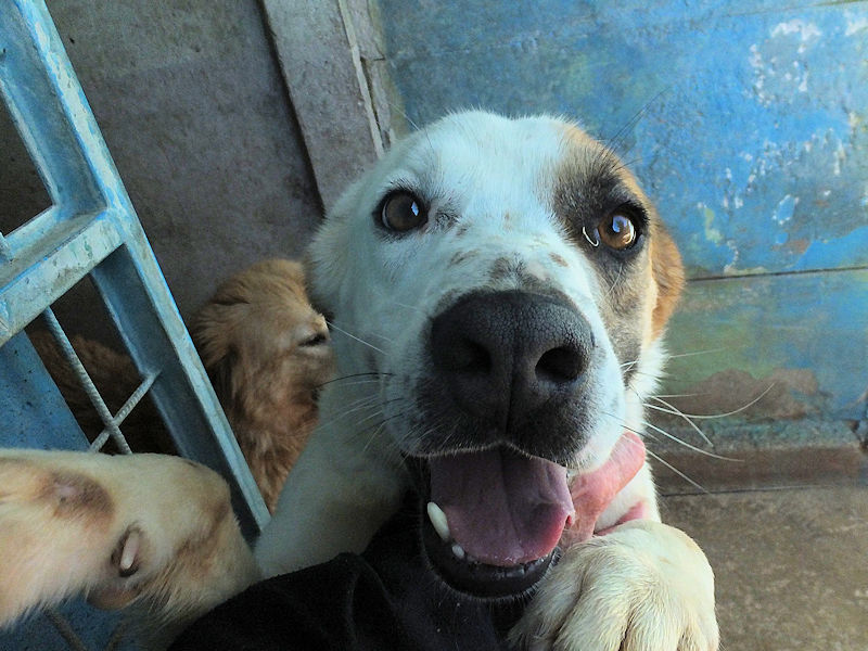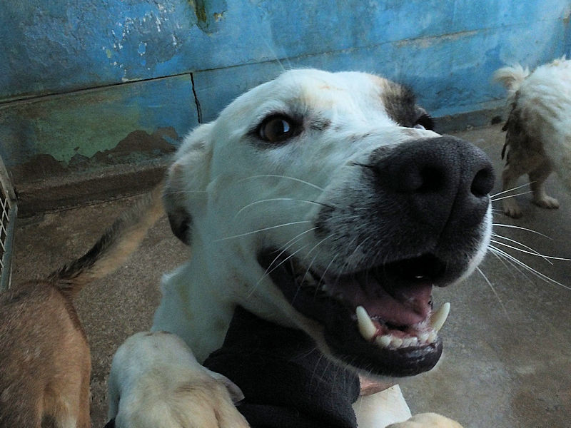 Finito prima per strada e poi in canile, Flash adesso vive in un box con altri cani, maschi e femmine,. Ci ha accolto con molto entusiasmo, felice di ricevere visite, felice di prendersi una coccola, e forse sperando che eravamo li’ per portarlo vuoi da quella prigione.