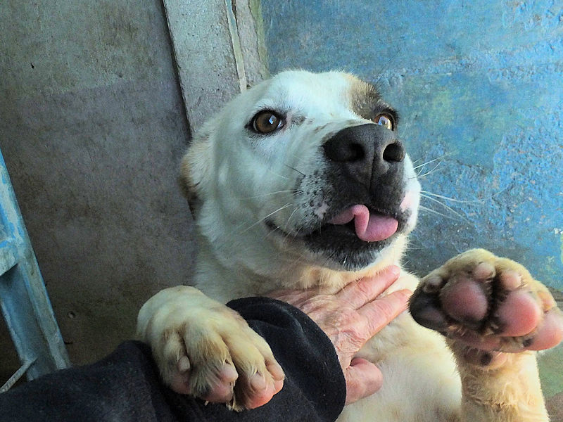 E’ un buon cane, socievole edaffettuoso, e pensiamo che potrebbe trovare una famiglia che lo ami, che si prenda cura di lui, una famiglia che non voglia fargli passare il resto dellasua vita chiuso in un box.