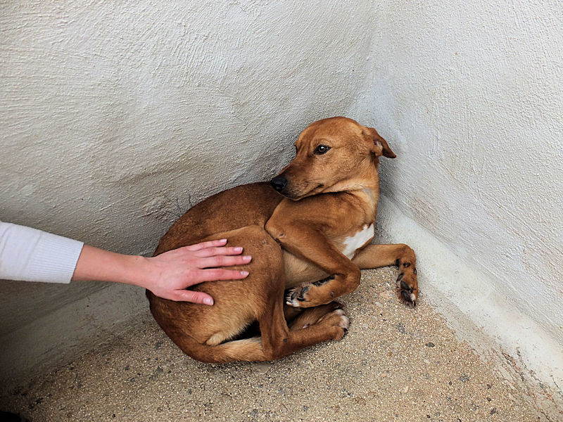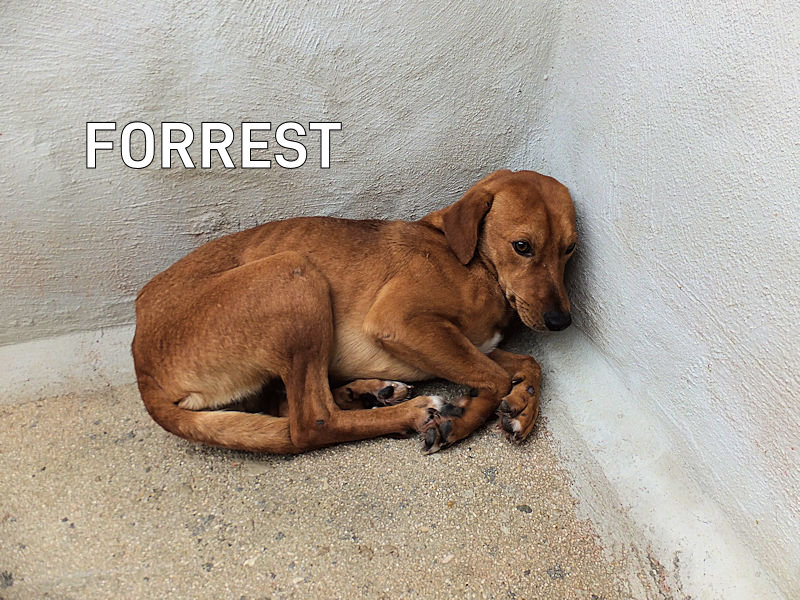 Forrest ha paura, e si vede. Forse la sua vita, prima di entrare in canile, era gia’ brutta, forse era un cane tenuto in giardino forse era addirittura un cane a cui qualcuno dava da mangiare in strada . Non lo sappiamo. Ma quando lo vediamo nel box per la prima volta., ci si stringe il cuore nel vederlo rannicchiato in un angolo, triste ed impaurito.