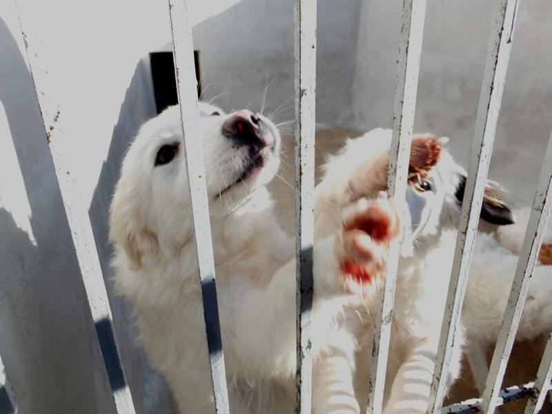 FOSCA bellissima tutta bianca e vaporosa, una bellezza dolcissimaAllegra e socievole, vivace, piena di gioia di vivere Non conosce nulla del mondo fuori da quelle mura, per lei cerchiamo adozine con persone gia’ esperte della razza, in casa con giardino per una migliore gestione iniziale, e meglio ancora se in compagnia di un cane ben socializzato che la aiuti a conoscere un mondo che non ha mai visto.