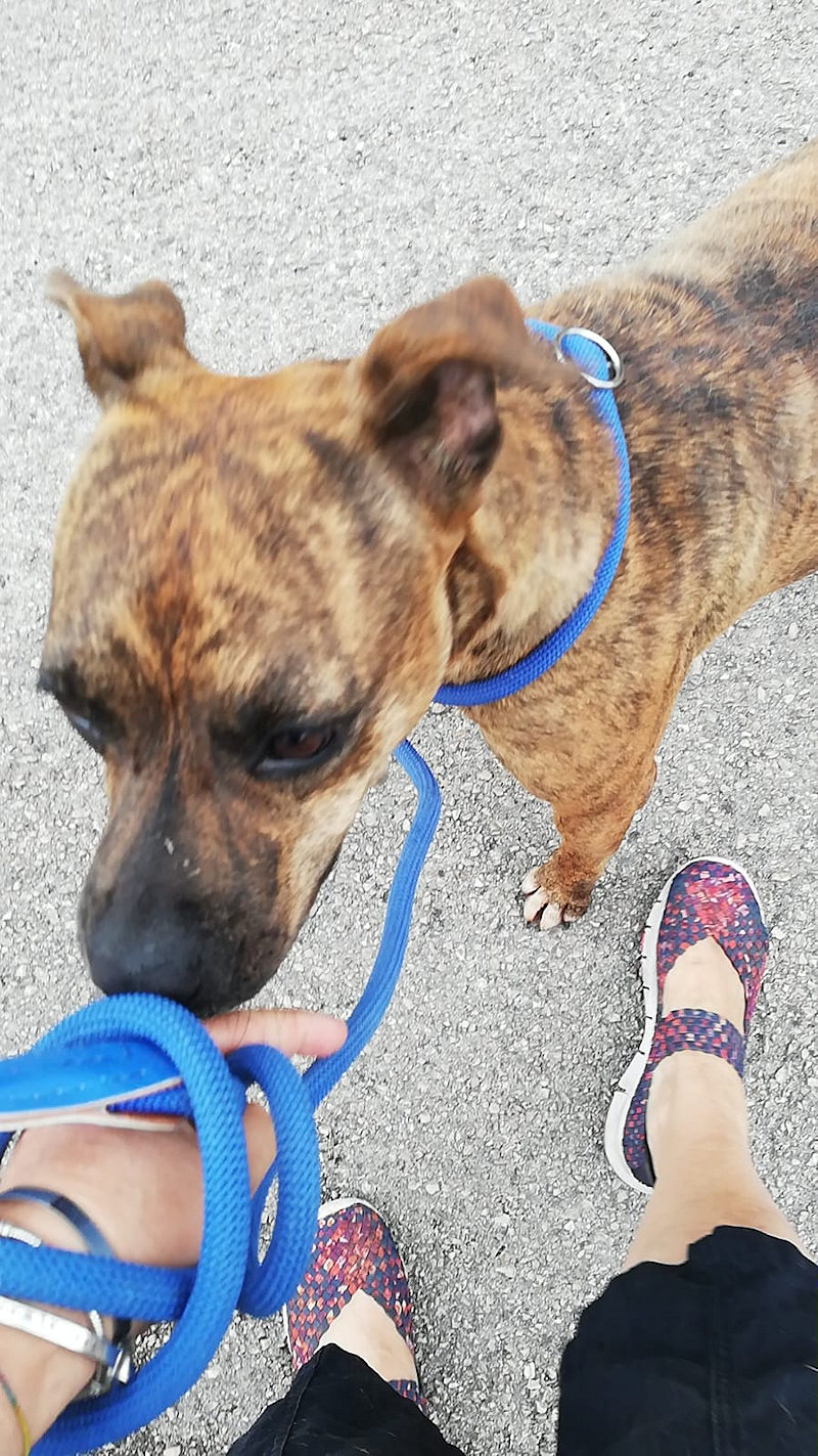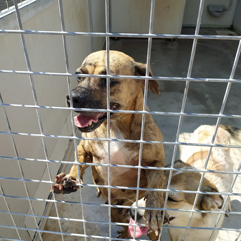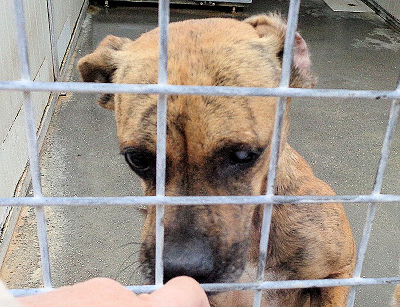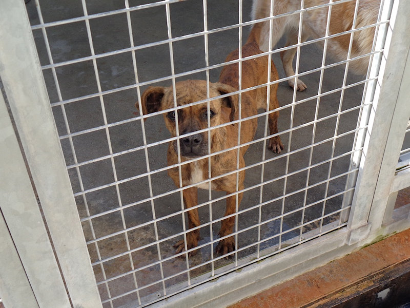 Non sappiamo molto di lei. Quel poco che sappiamo e vediamo è che questa cagnolina con l’aria vagamente da molossina è stata tenuta e trattata proprio come una “bestia” da chi avrebbe dovuto amarla come una figlia di un Dio minore. Trovata vagante per la strada, aveva le mammelle gonfie ma non c’era traccia dei suoi cuccioli, che avranno senza dubbio fatta una brutta fine. Ma non solo, ha anche un occhietto che non vede ! Probabile sia successo a causa di un trauma, insomma una bella botta in faccia con un bastone o qualcosa di simile.
