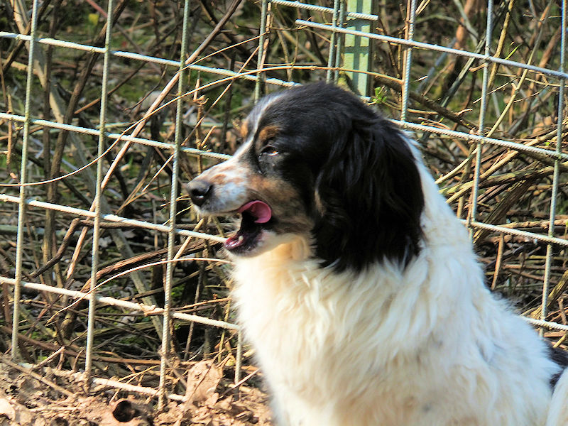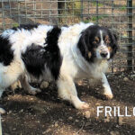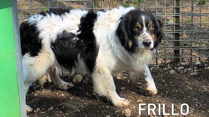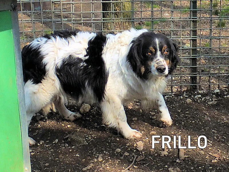Frillo è un bellissimo  breton/bearnese timido e schivo, un cane che, dagli esseri umani, deve avere ricevuto un brutto trattamento nei suoi primi due anni di vita ed ancora non se lo è dimenticato.  Chissa’ se era nelle mani di qualche cacciatore, e sappiamo bene che metodi vengono usati per addestrarli alla caccia.