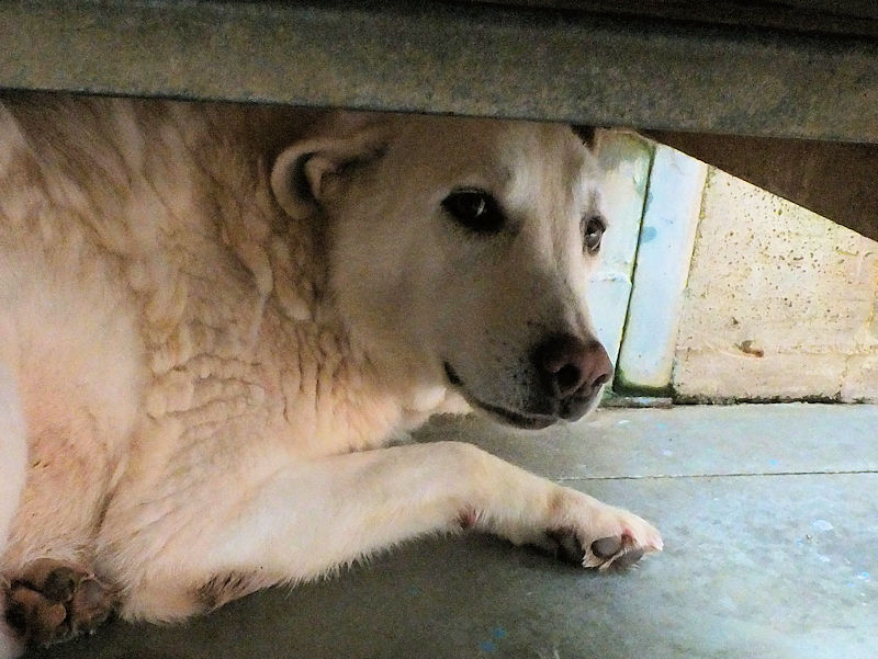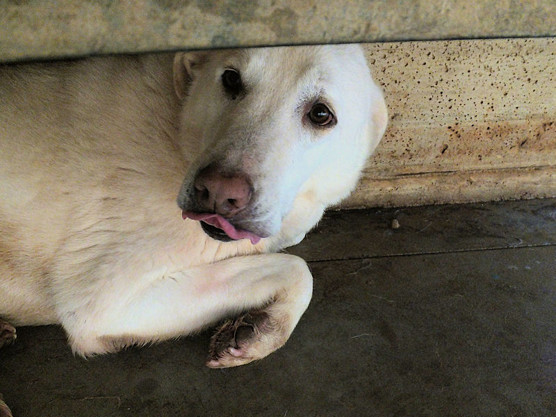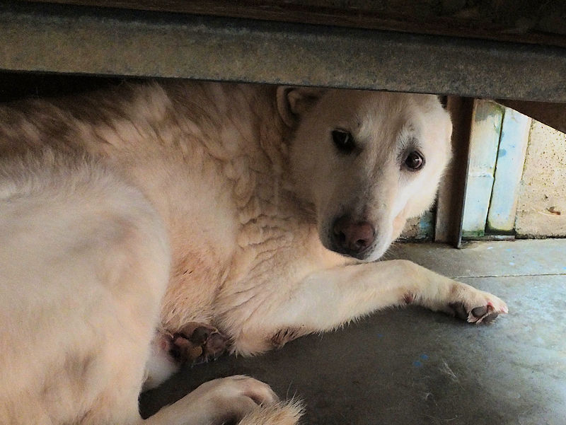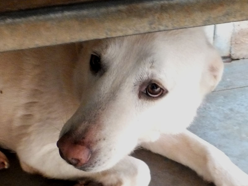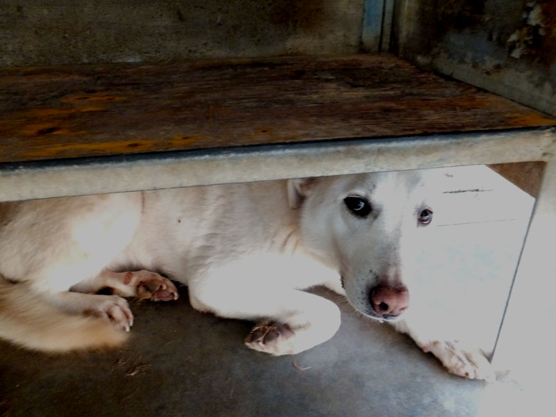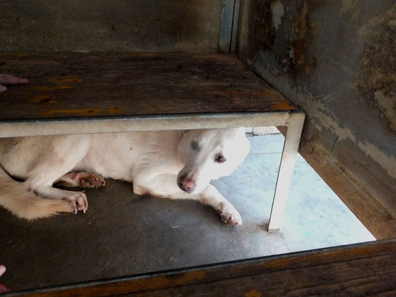 Gaia è molto timida, per lei siamo degli sconosciuti e cerca in tutti i modi di evitare il contatto, non vuole neppure guardarci, ha timore di chi non conosce. Buona e tranquilla, per lei ci vuole una adozione competente perchè è cresciuta in canile senza fare le esperienze che ogni cucciolo dovrebbe fare, e per lei cerchiamo una adozione con persone pazienti, meglio se in compagnia di un cane ben socializzato che la aiuti a conoscere un mondo che non ha mai visto.