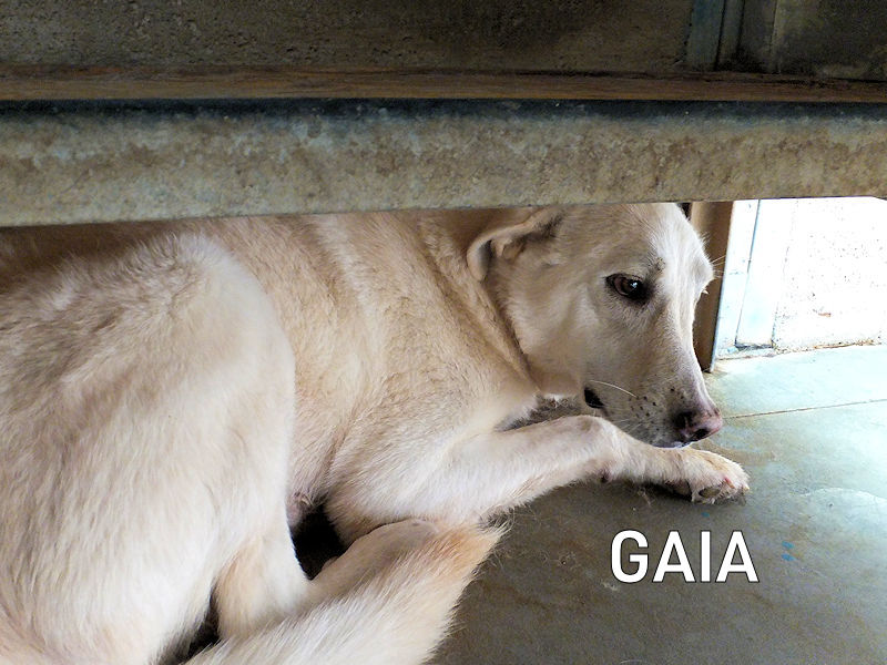 Gaia fa parte di una cucciolata indesiderata, nata nella casa di chi non ha voluto sterilizzare la sua mamma perchè in certe zone non si spende un soldo per il proprio cane. E ha trovato comodo, economico e semplice buttare i cuccioli. Ne troviamo tre, di questa cucciolata: Gaia con sua sorella Astrid e suo fratello Bandito.