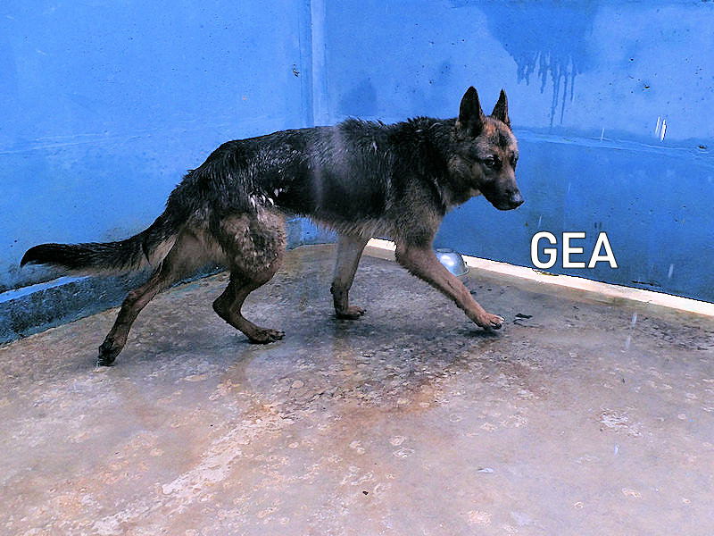Gea  bella Pastore Tedesco di taglia mediogrande, sui 30 kg è nata ad agosto 2019 ed a soli due anni è stata buttata in strada finendo in canile ad agosto 2021, un classico abbandono estivo.