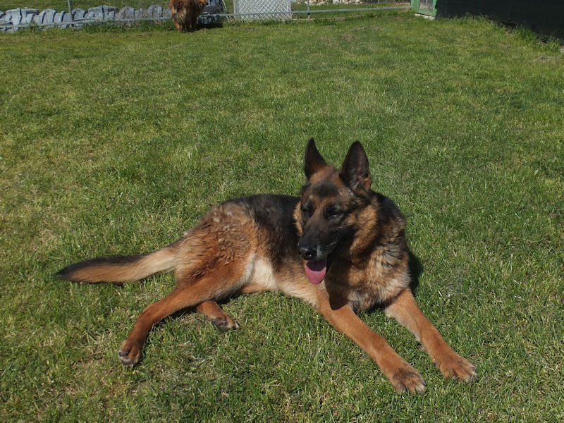 Convive in box con maschi e femmine, ha un ottimo carattere ma consigliamo la sua adozione con un compagno maschio , come ben sapete i Pastori Tedeschi sono cani che si attaccano molto alla personam meglio evitare gelosie con un’altra femmina.