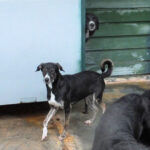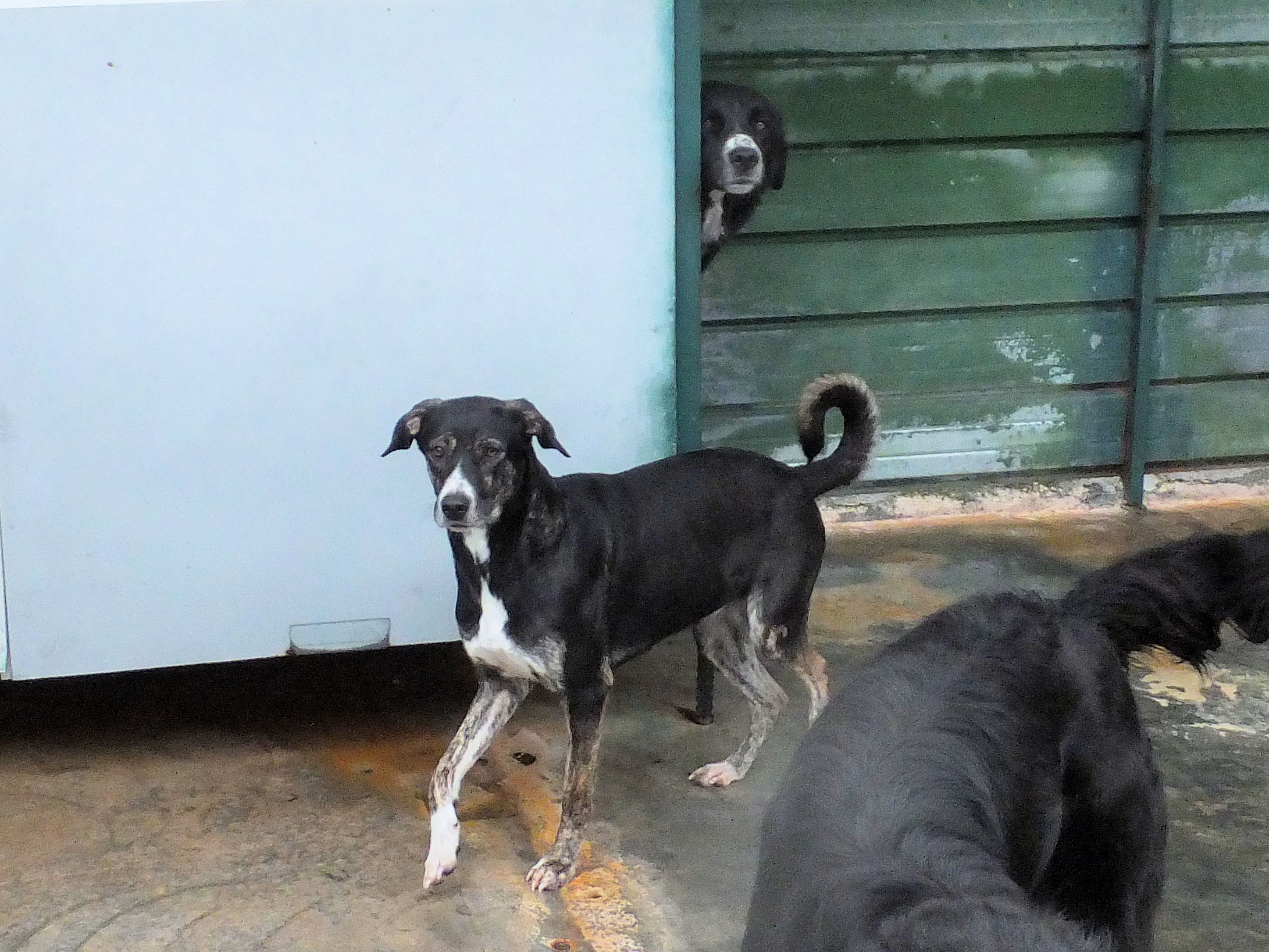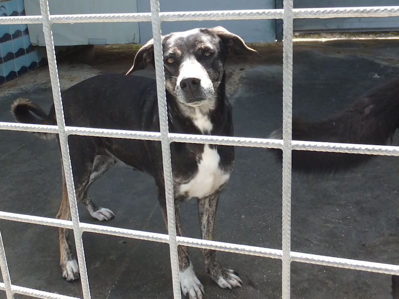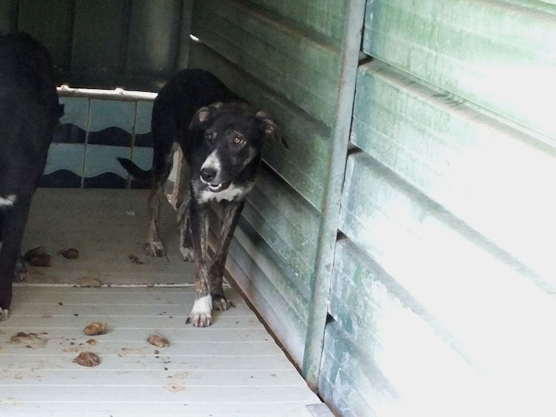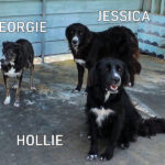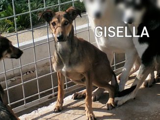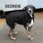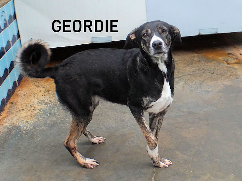 Geordie è la piu’ timidina, per lei ci vorrebbe una adozione con persone gentili e pazienti, in una casa con giardino ben sicuro ed in compagnia di un cane ben socializzato che la aiuti a fidarsi delle persone ed a conoscere un mondo che ha visto davvero poco.