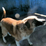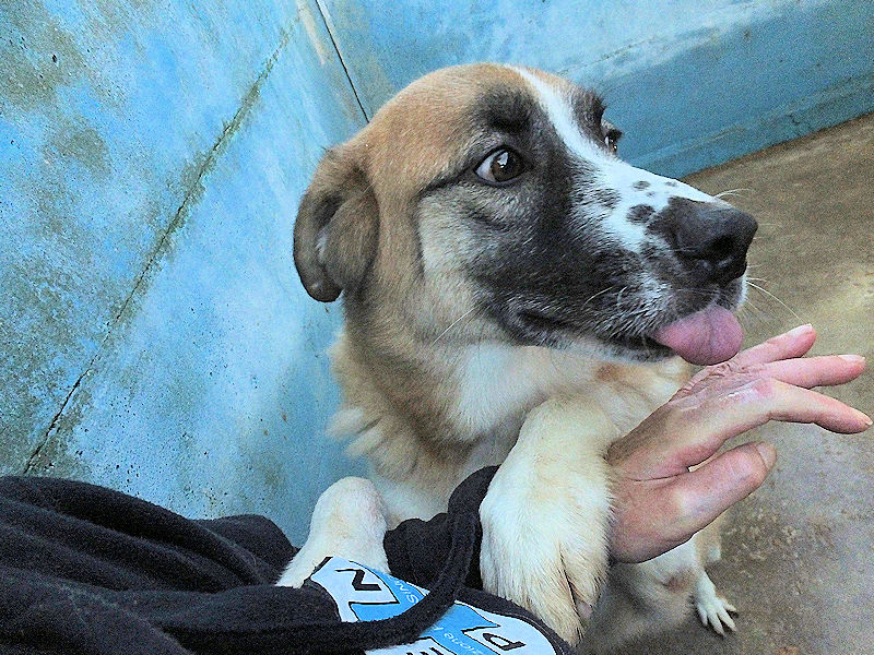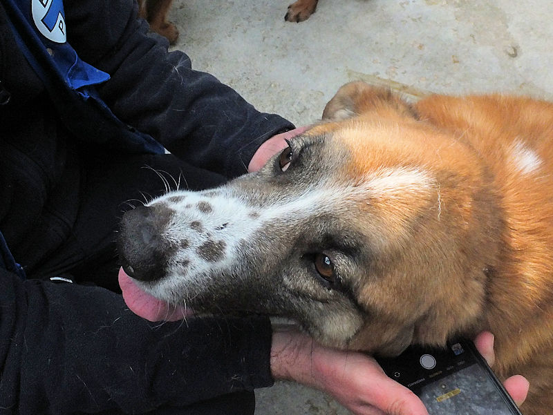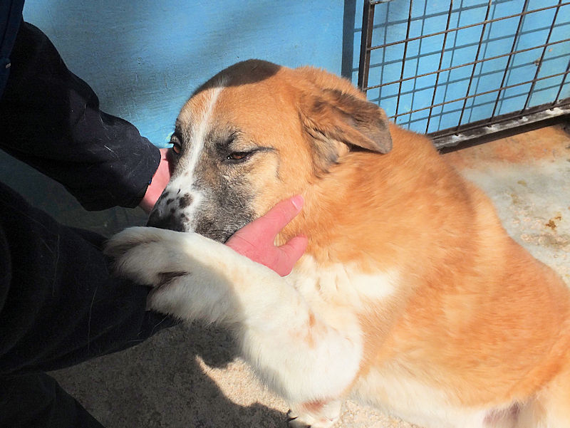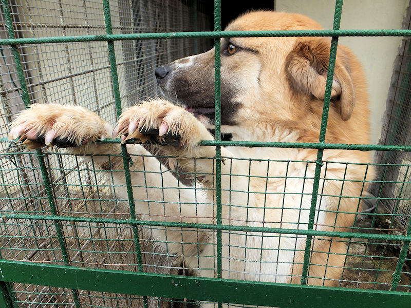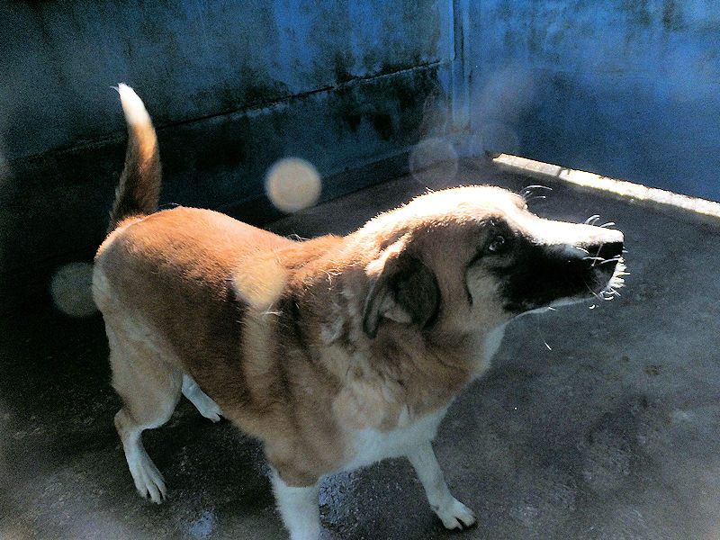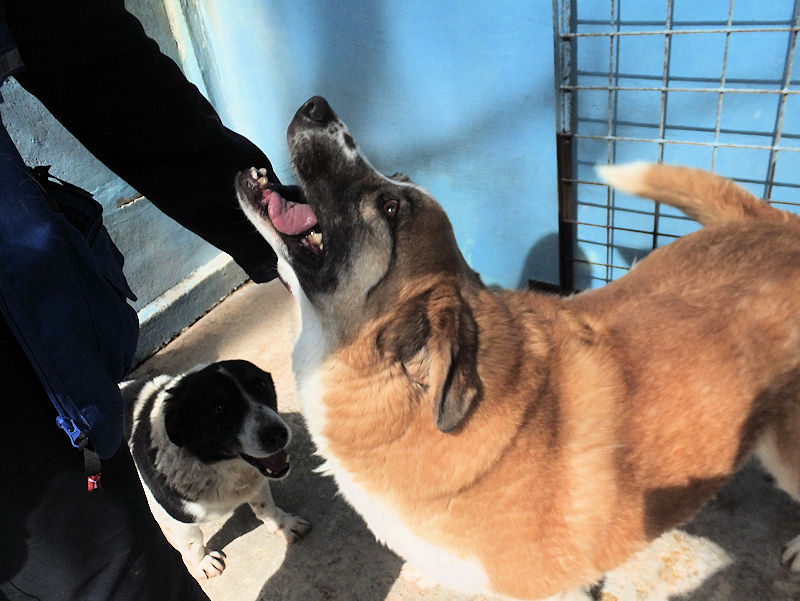 Quando arriviamo davanti al suo box, ce lo troviamo davanti, insieme alla sua compagna Amal. Bello, pieno di fascino, sguardo ammaliatore,…e come altro potevmo chiamarlo ? E’ stato subito felice di conoscerci, subito affettuoso, subito pieno di mossette e smorfie per farsi notare. Un vero amore di cane, ma tutto questo, come sempre, non è bastato per evitare di essere puntulmente abbandonato, in una zona dove sembra sia lo sport preferito da tutti.