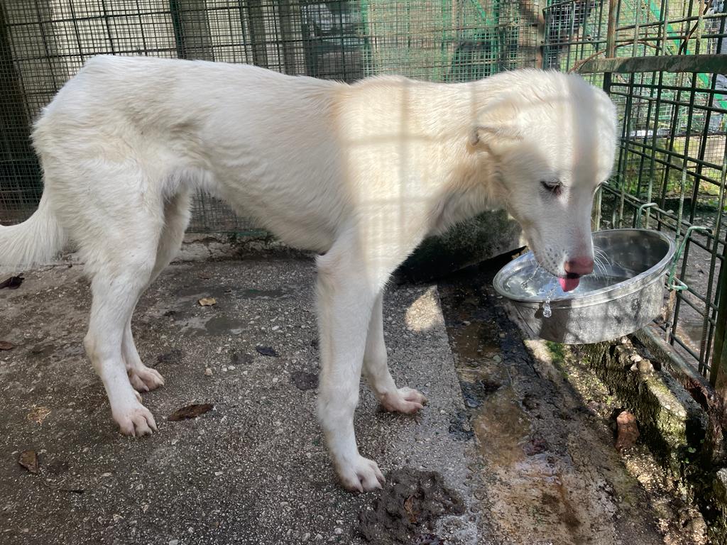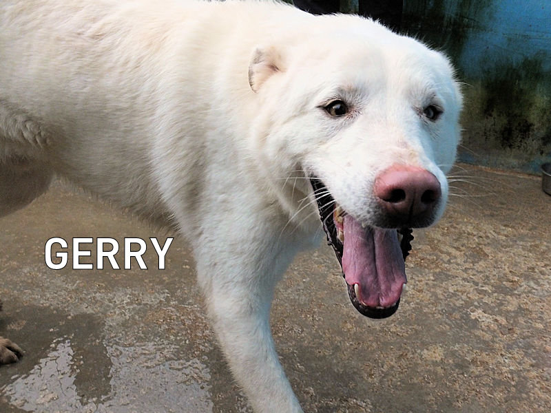 Attenzione . queste fotoin cui è magrissimo sono state fatte in un canile ma poi Gerry è stato trasferito in altro canile, dove, finalmente, si mangia.