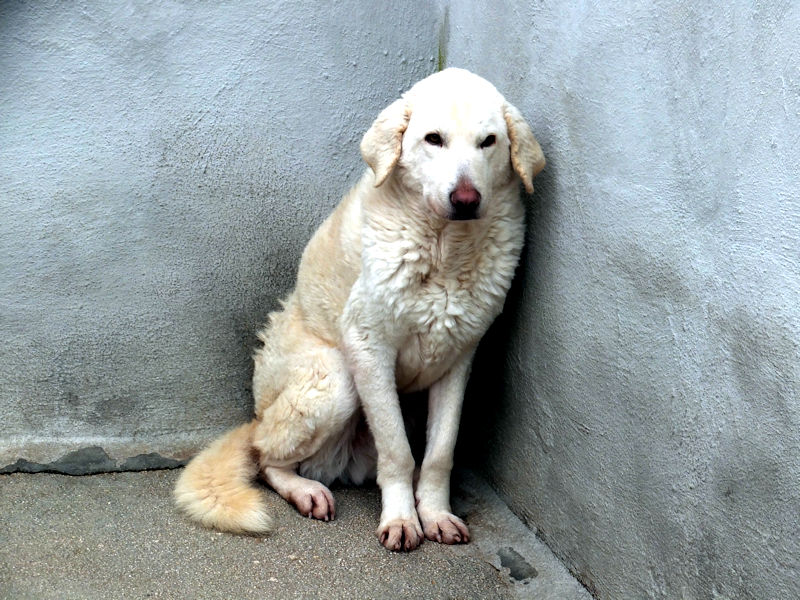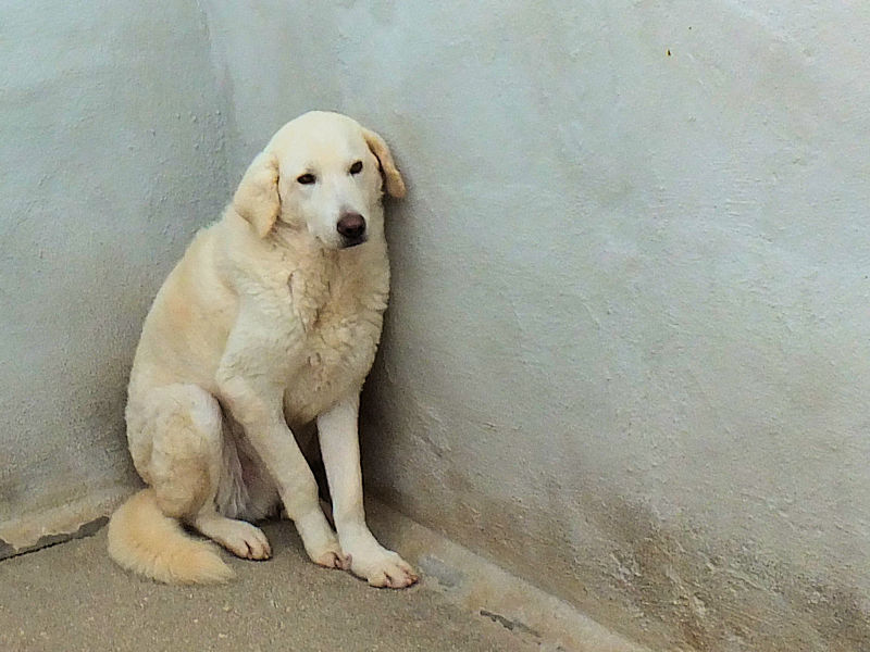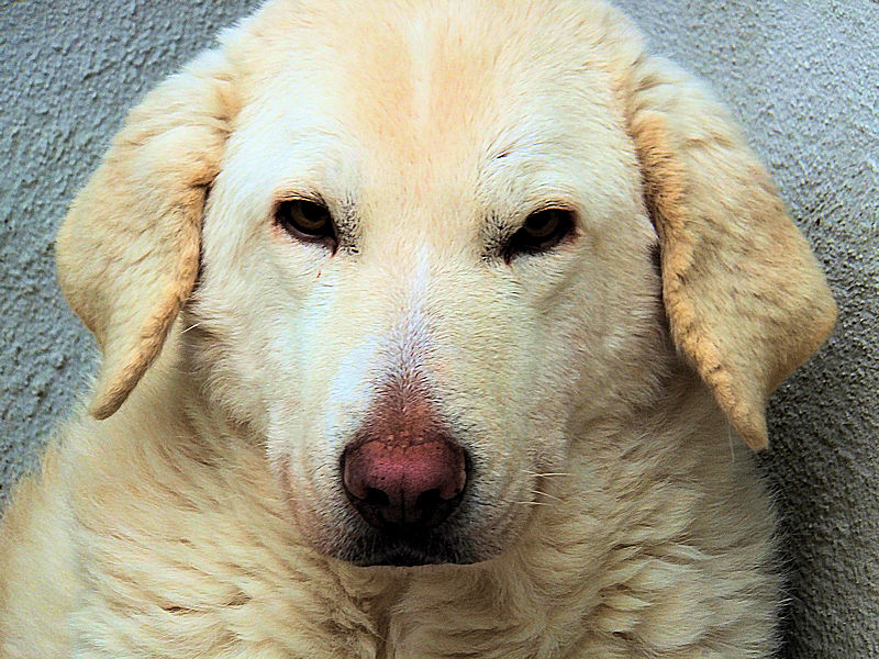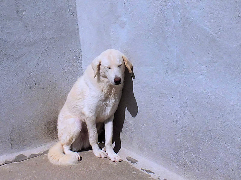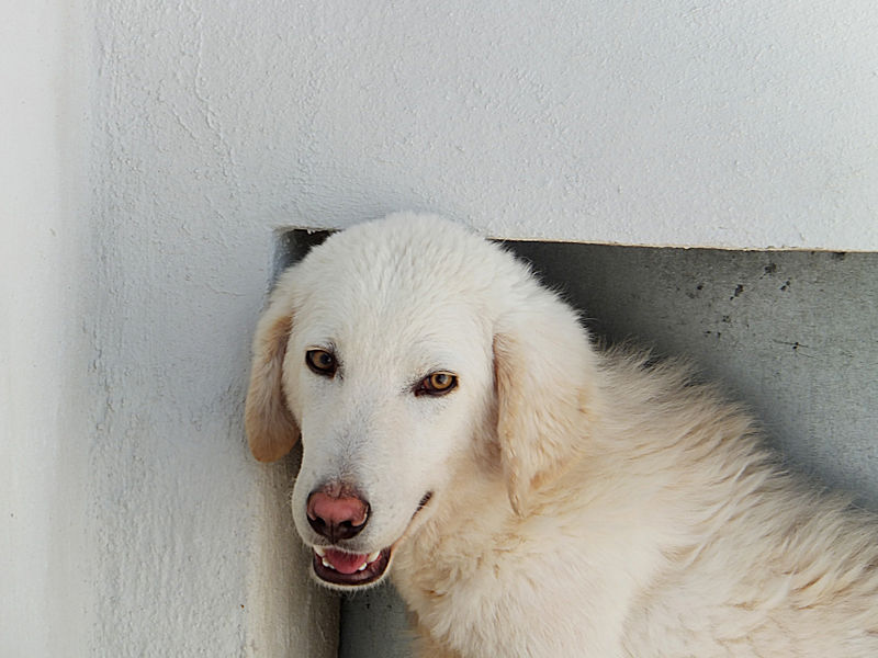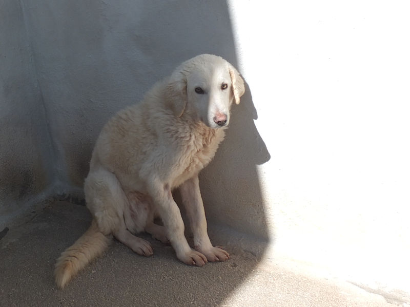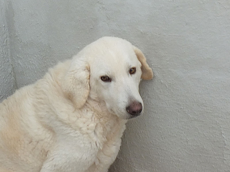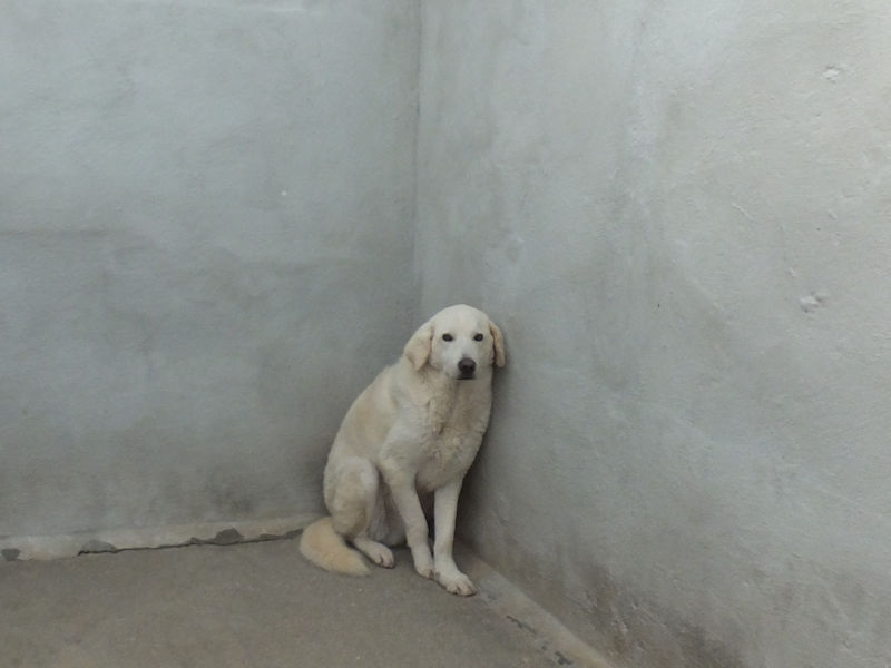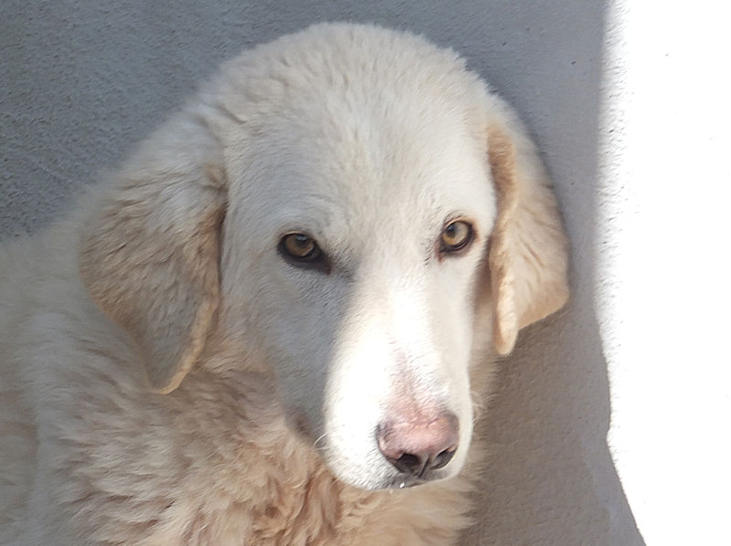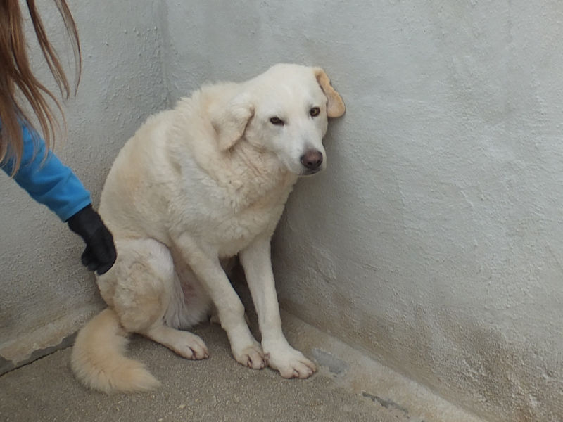 Giorgetto bellissimo Maremmano  bianco con gli occhi verdi ed il naso rosa, abbandonato a 6 mesi e finito in canile.  Il solito cucciolo preso in qualche cucciolata casalinga e tenuto per qualche mese, oppure  il solito cucciolo  del pastore scacciato  a colpi di pietra, scgliete voi, tanto le storie sono sempre le stesse, in certe zone purtroppo non arriva proprio alcuna forma di civilta’ e  da decenni  si continuano ad abbandonare cani di ogni genee, eta’ e taglia..
