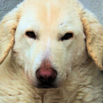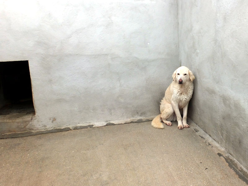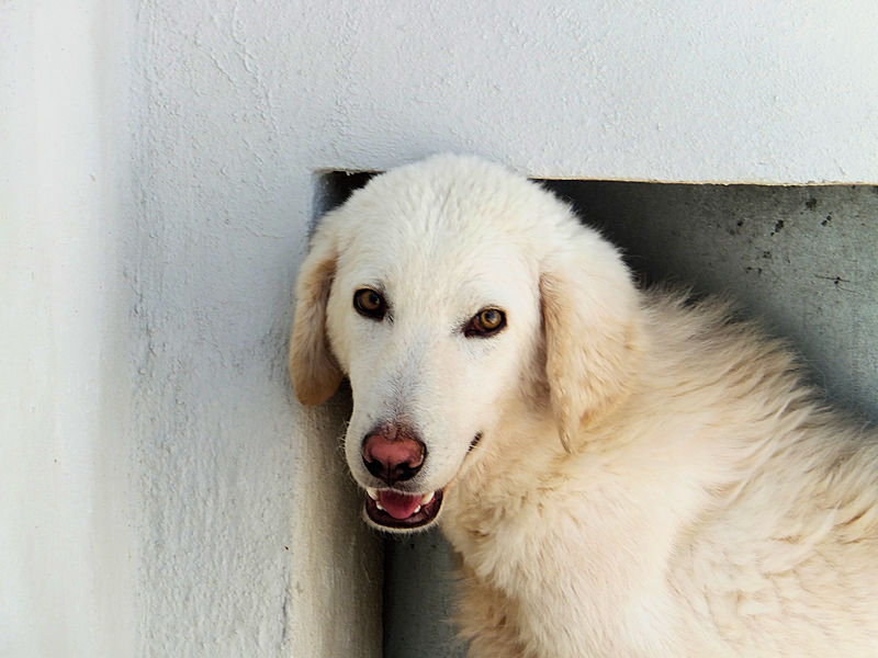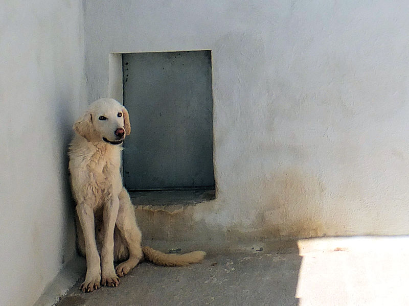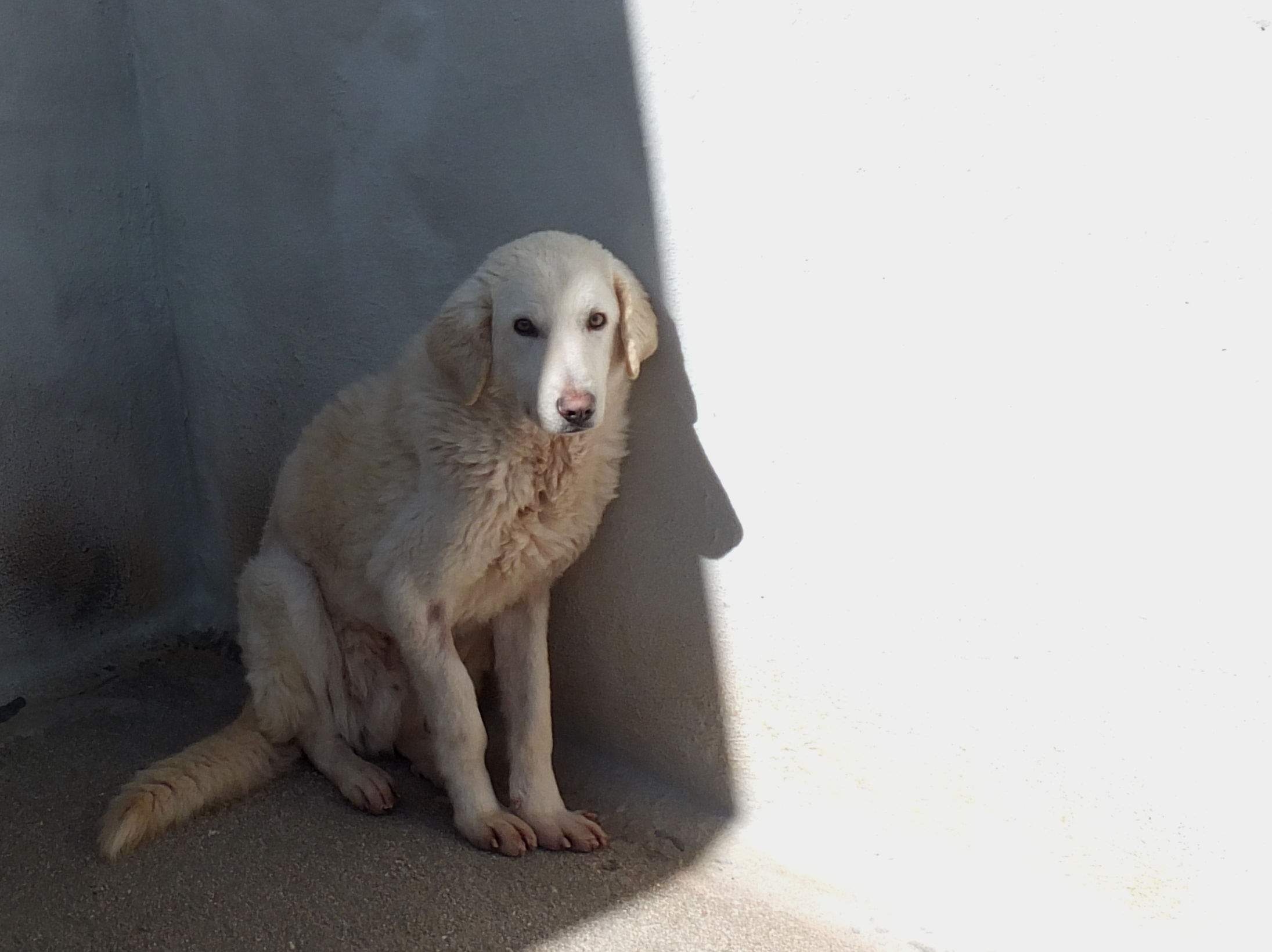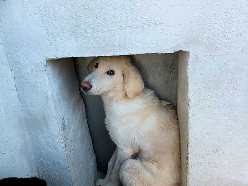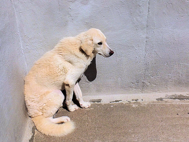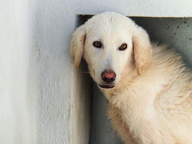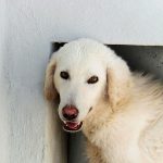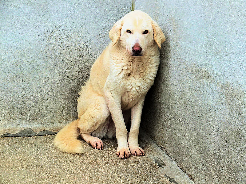 Giorgetto bellissimo Maremmano  bianco con gli occhi verdi ed il naso rosa, abbandonato a 6 mesi e finito in canile.  Il solito cucciolo preso in qualche cucciolata casalinga e tenuto per qualche mese, oppure  il solito cucciolo  del pastore scacciato  a colpi di pietra, scgliete voi, tanto le storie sono sempre le stesse, in certe zone purtroppo non arriva proprio alcuna forma di civilta’ e  da decenni  si continuano ad abbandonare cani di ogni genee, eta’ e taglia..