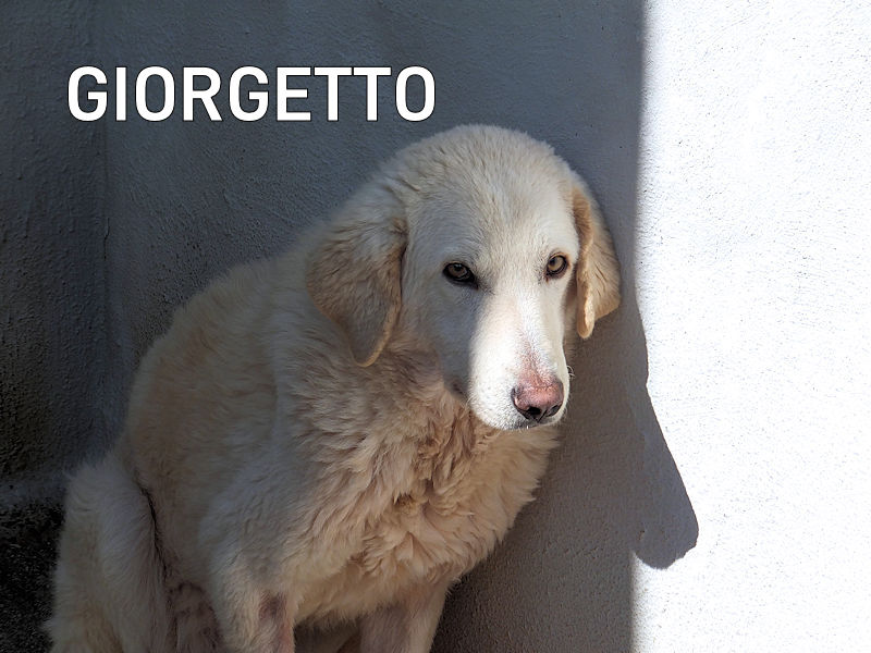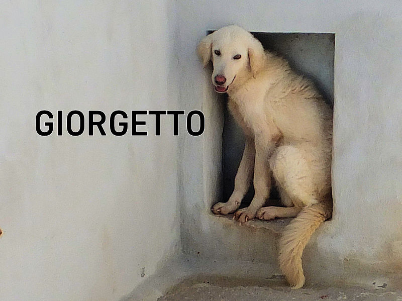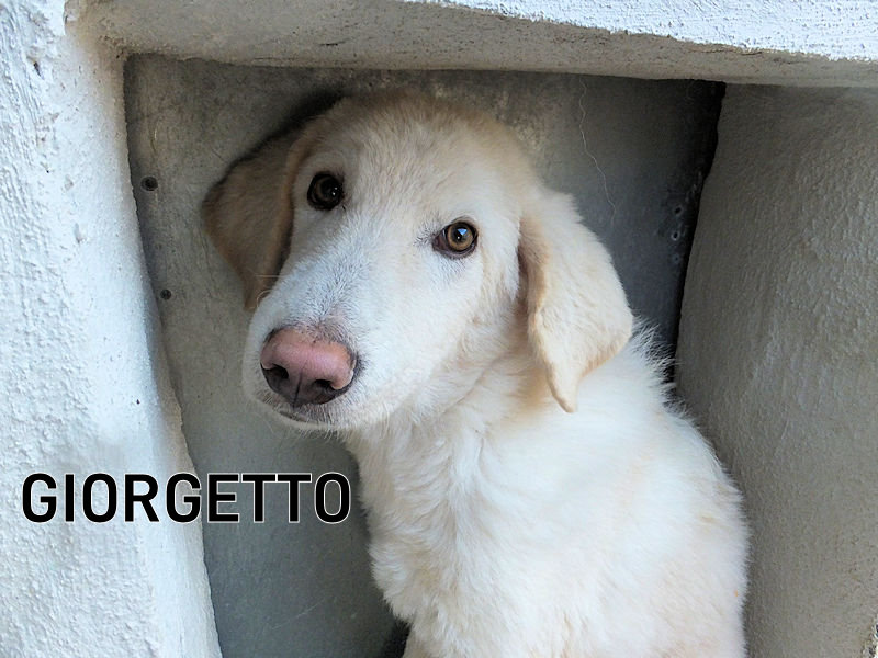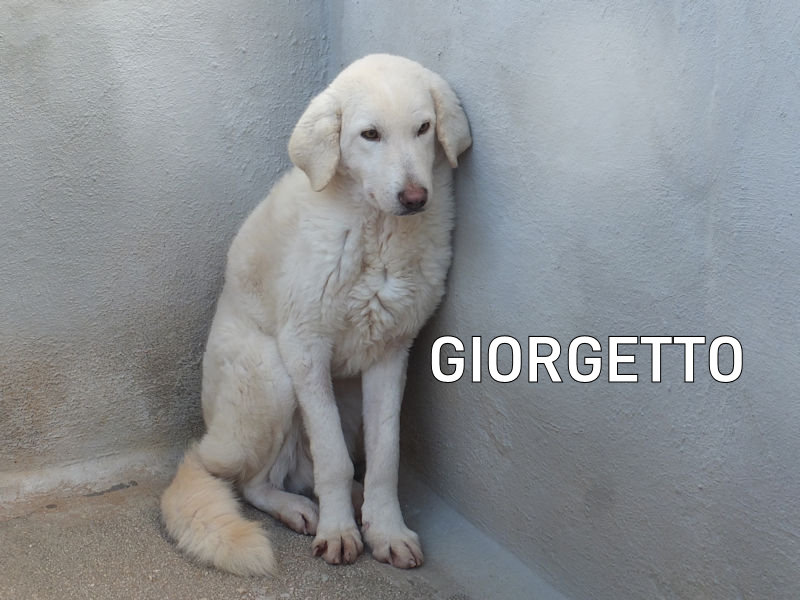 Giorgetto bellissimo maremmano  dagli occhi verdi è una taglia mediogrande sui  30  kg .Nato a febbraio 2022, ad agosto 2022 era già finito in un box di canile.