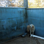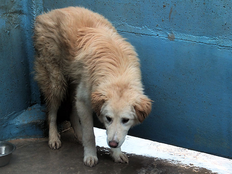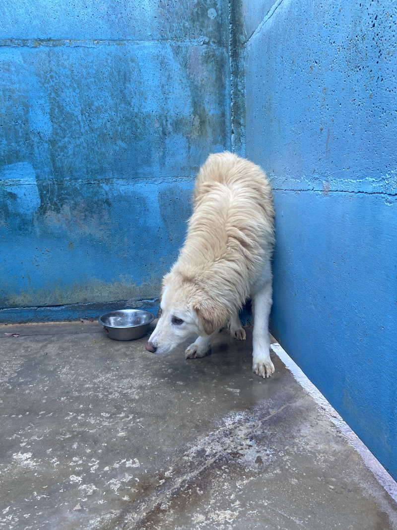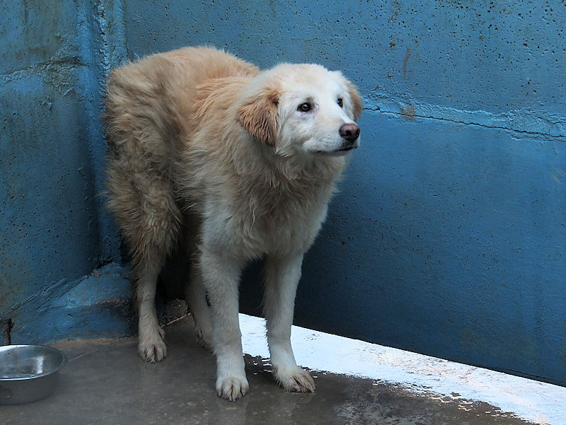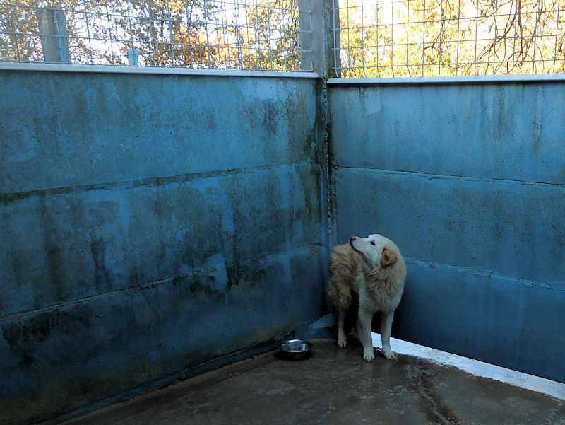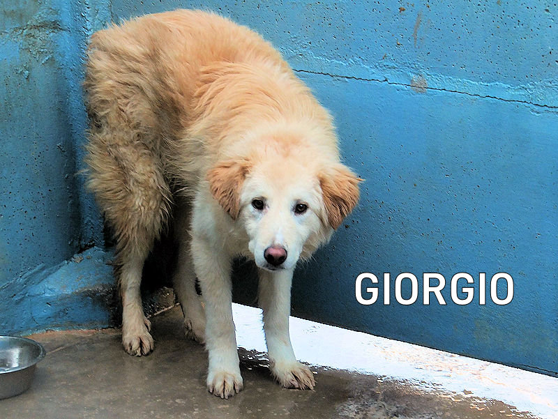 Quando entriamo nel suo box, Giorgio si mette in un angolo e ci guarda con due occhi tristissimi e preoccupati, si aspetta il peggio, chissa’ se è stato scacciato o persino picchiato, prima di finire in quel box. Questa non è una adozione facile, Giorgio non è un cane che in pochi giorni comincia a … sorridere ed a desiderare coccole. Questa è una adozione per chi ha un cuore grande, e vuole offrire a questa creatura una possibilita’ di una vita diversa.